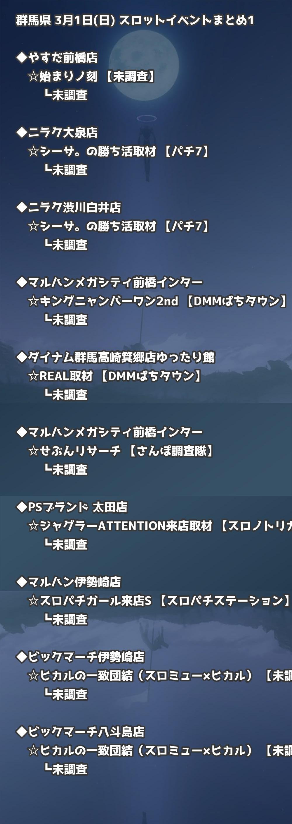 【群馬県】3月1日(日) パチンコホールイベント取材まとめ記事です。