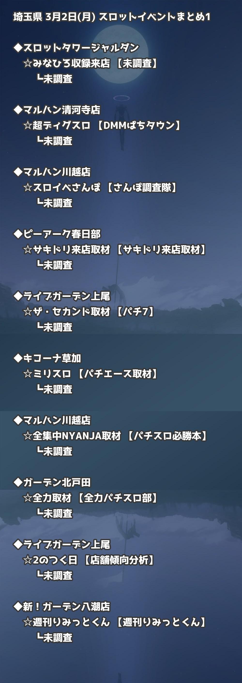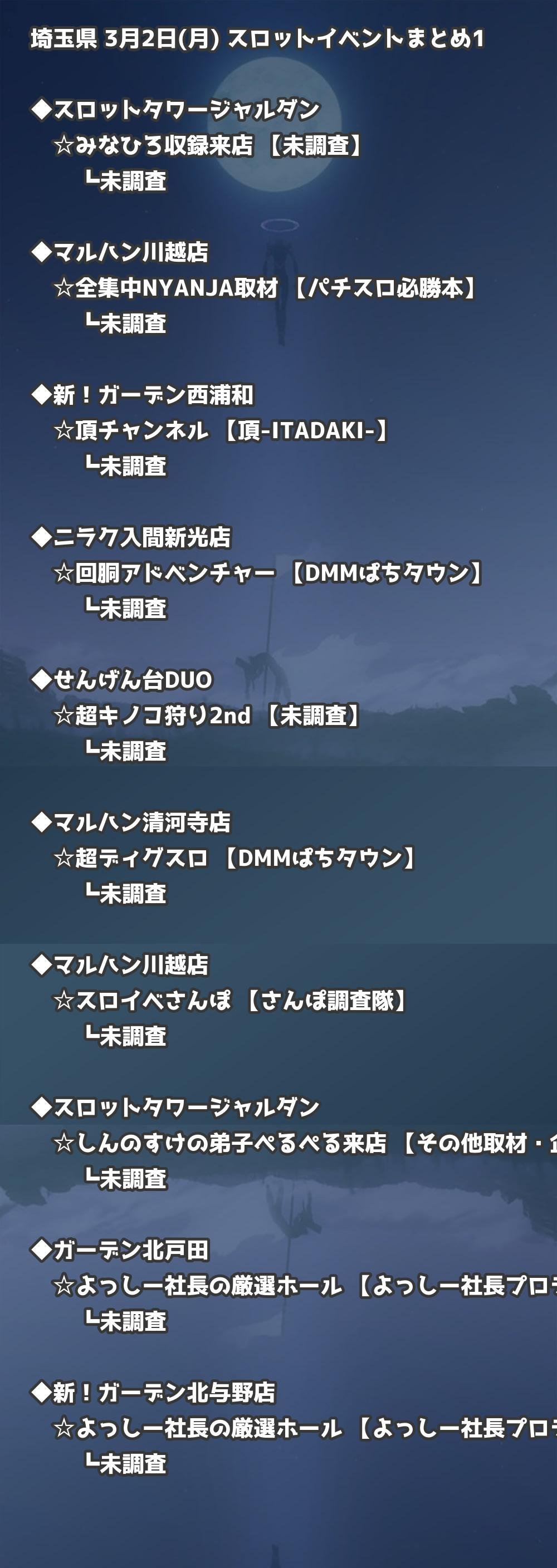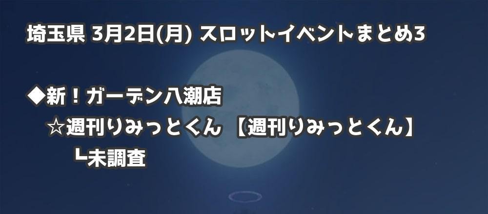 【埼玉県】3月2日(月) パチンコホールイベント取材まとめ記事です。