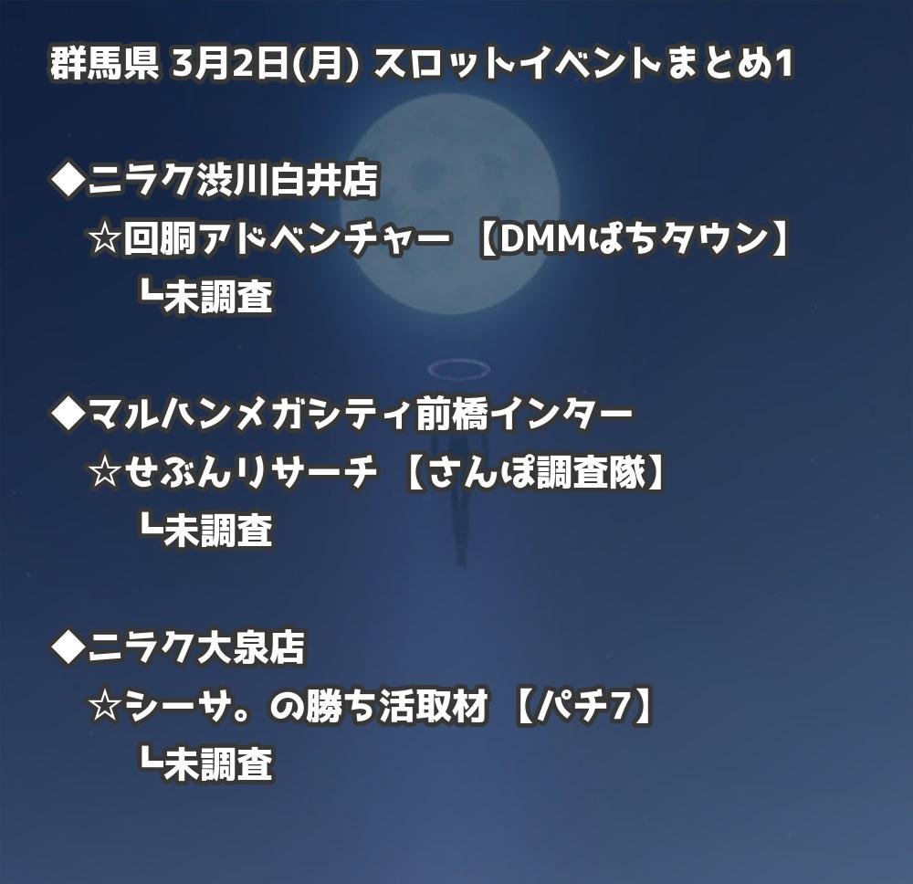 【群馬県】3月2日(月) パチンコホールイベント取材まとめ記事です。