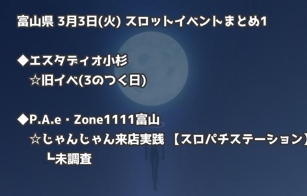 【富山県】3月3日(火) パチンコホールイベント取材まとめ記事です。