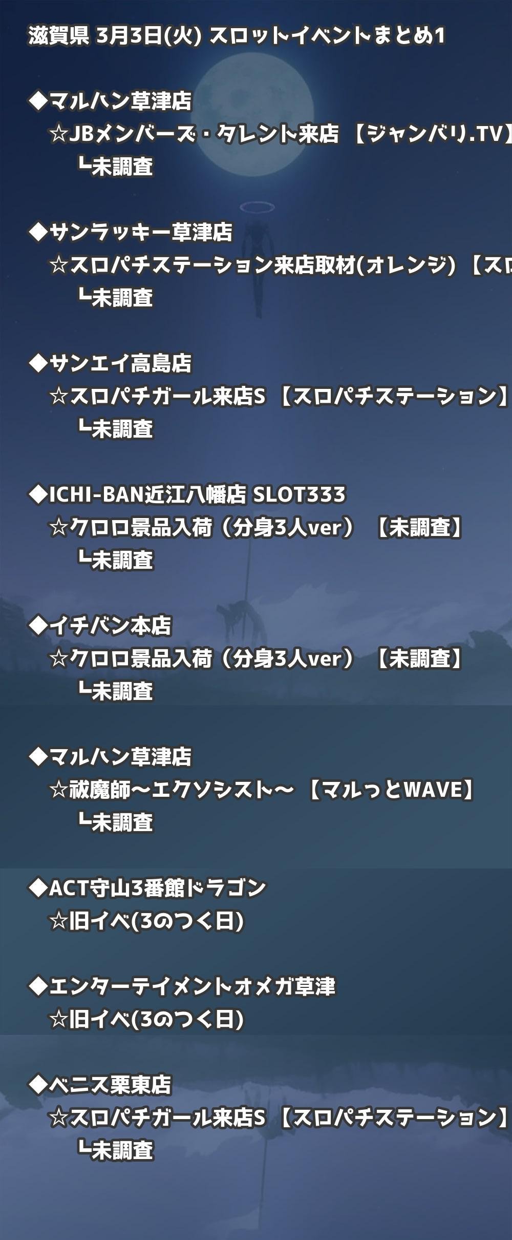 📊 滋賀県 3月3日(火) 勝てるパチンコ・スロット取材店舗一覧|おすすめ順