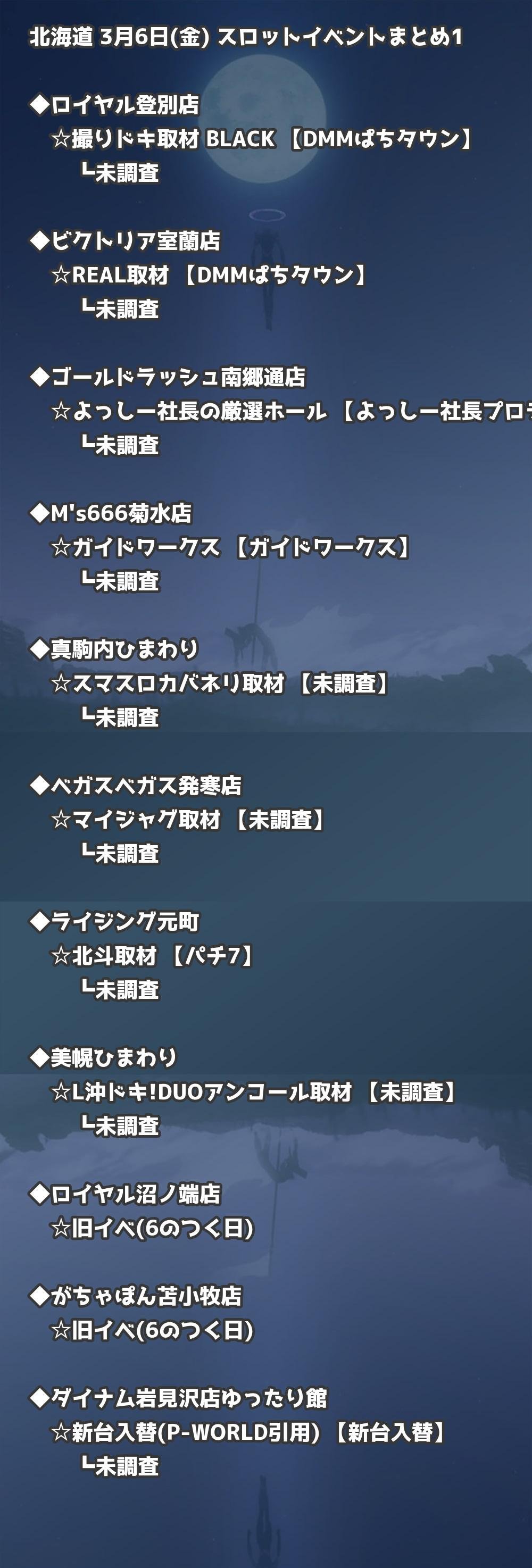 【北海道】3月6日(金) パチンコホールイベント取材まとめ記事です。