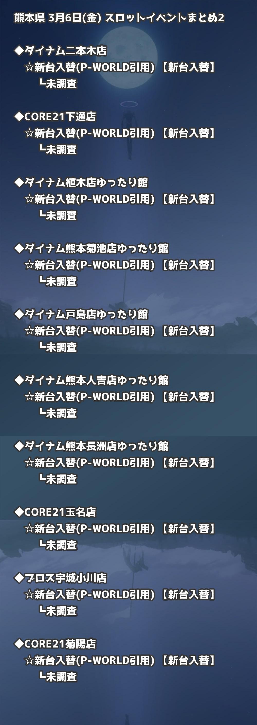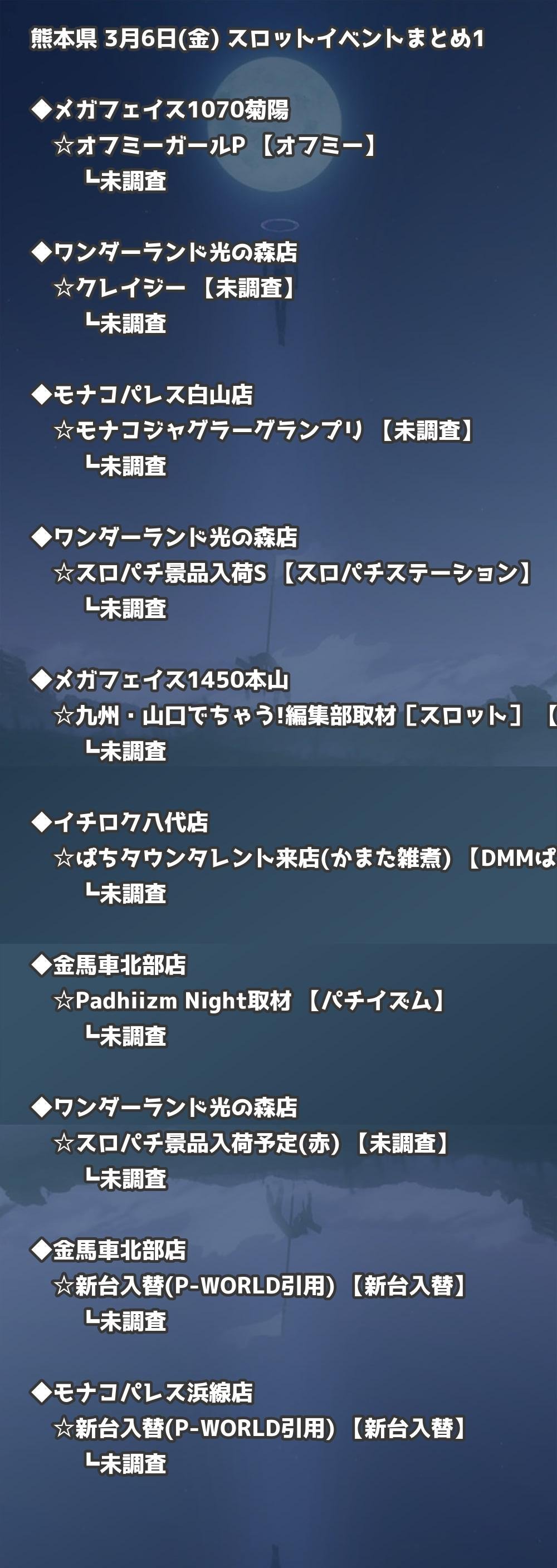 【熊本県】3月6日(金) パチンコホールイベント取材まとめ記事です。