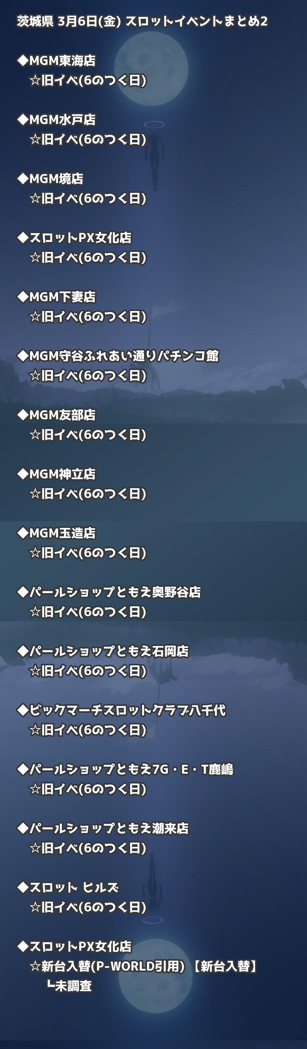 | MGM守谷ふれあい通りパチンコ館 | 旧イベ(6のつく日) | 旧イベ |