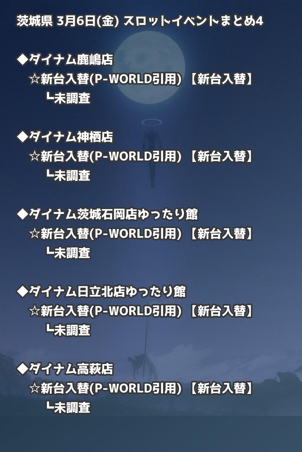 | ダイナム神栖店 | 新台入替(P-WORLD引用) | 新台入替 |