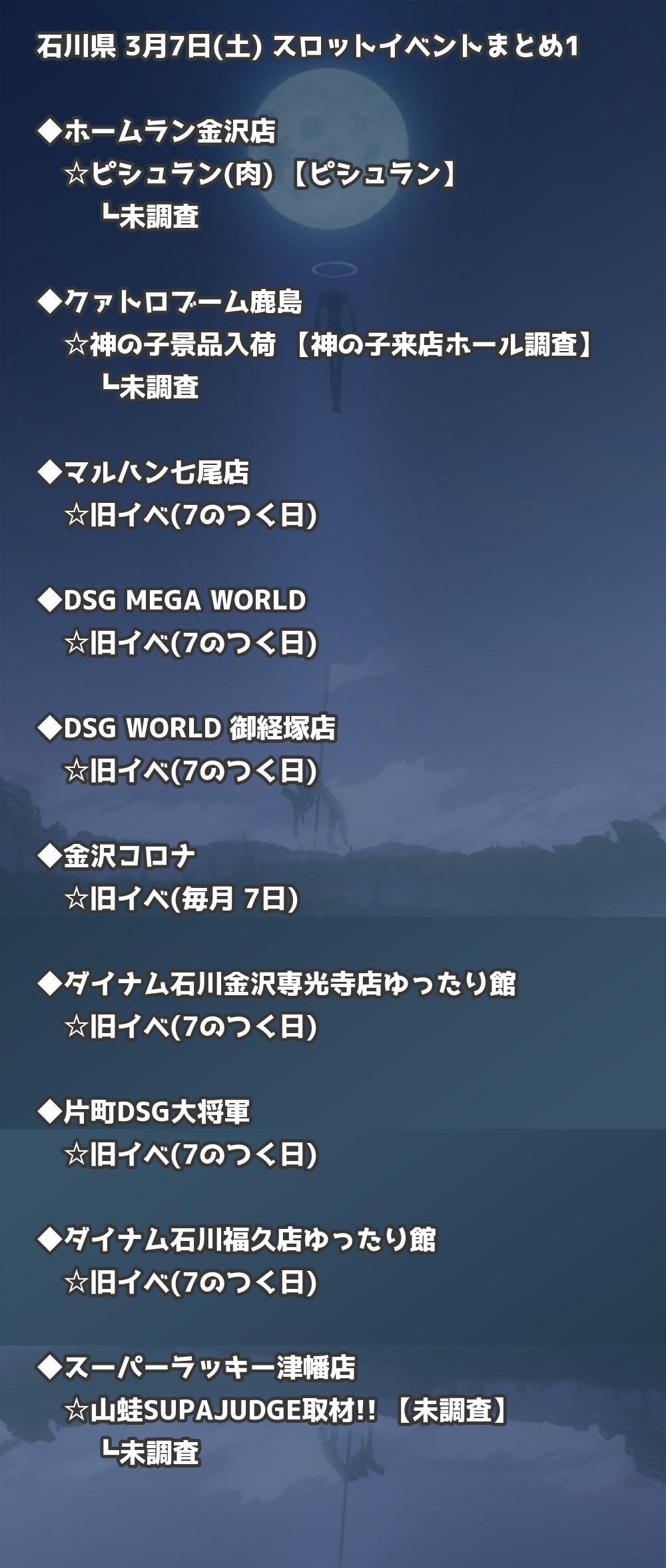 【石川県】3月7日(土) パチンコホールイベント取材まとめ記事です。