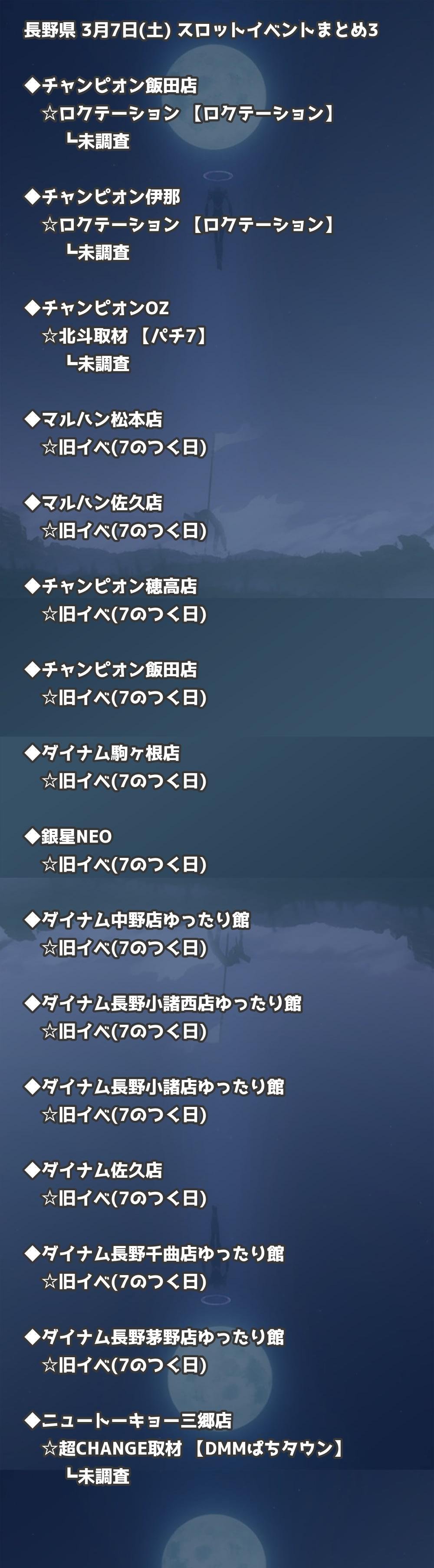 【長野県】3月7日(土) パチンコホールイベント取材まとめ記事です。