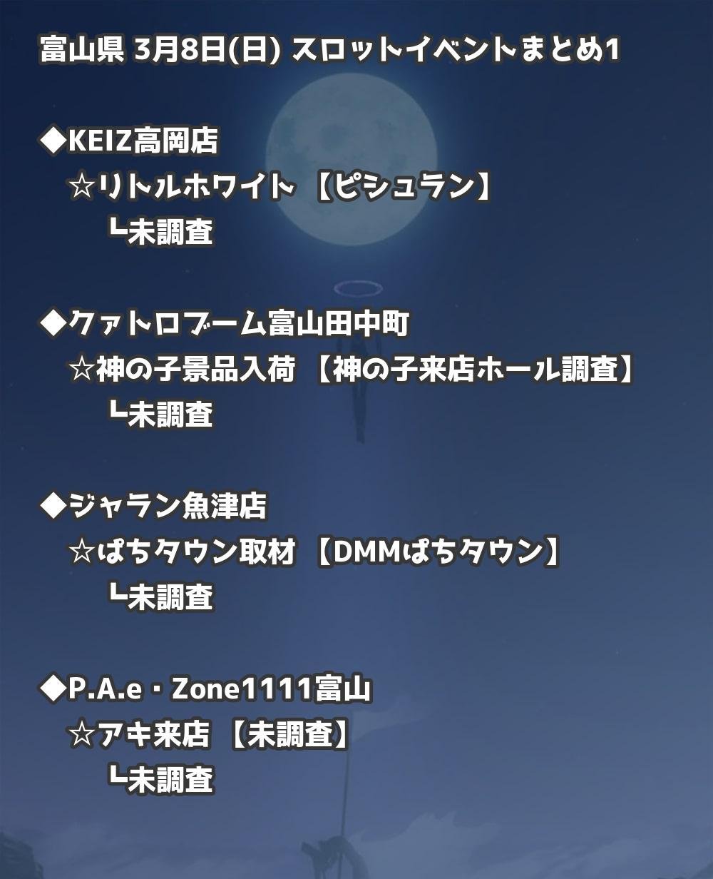 【富山県】3月8日(日) パチンコホールイベント取材まとめ記事です。