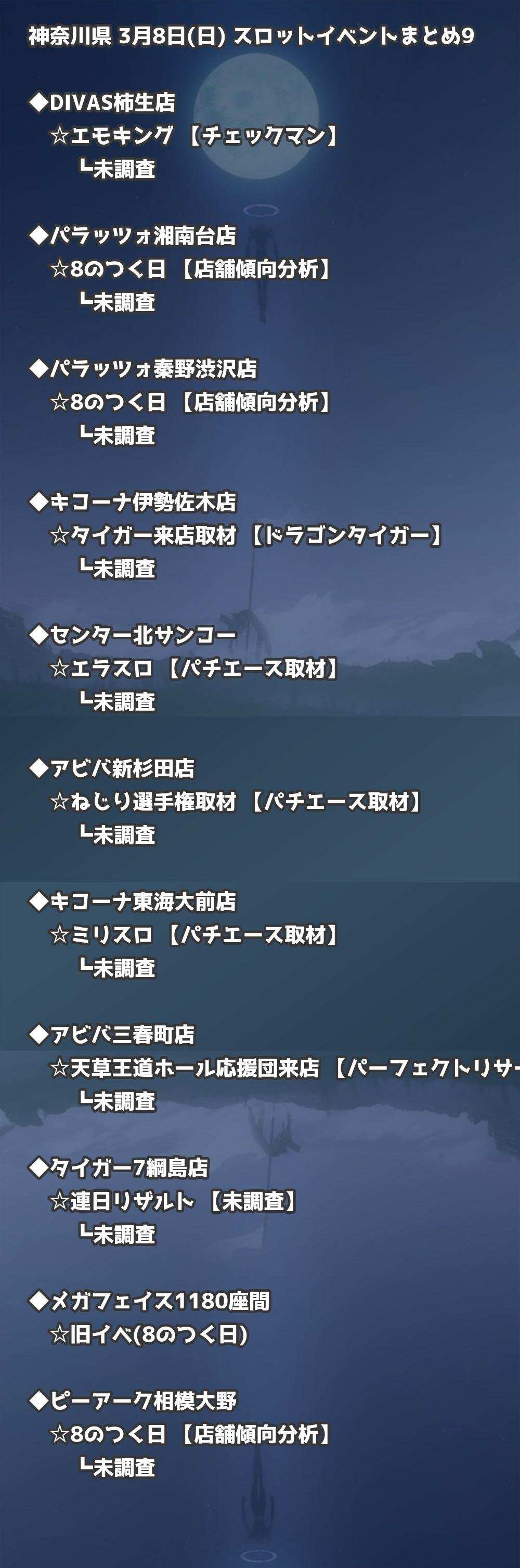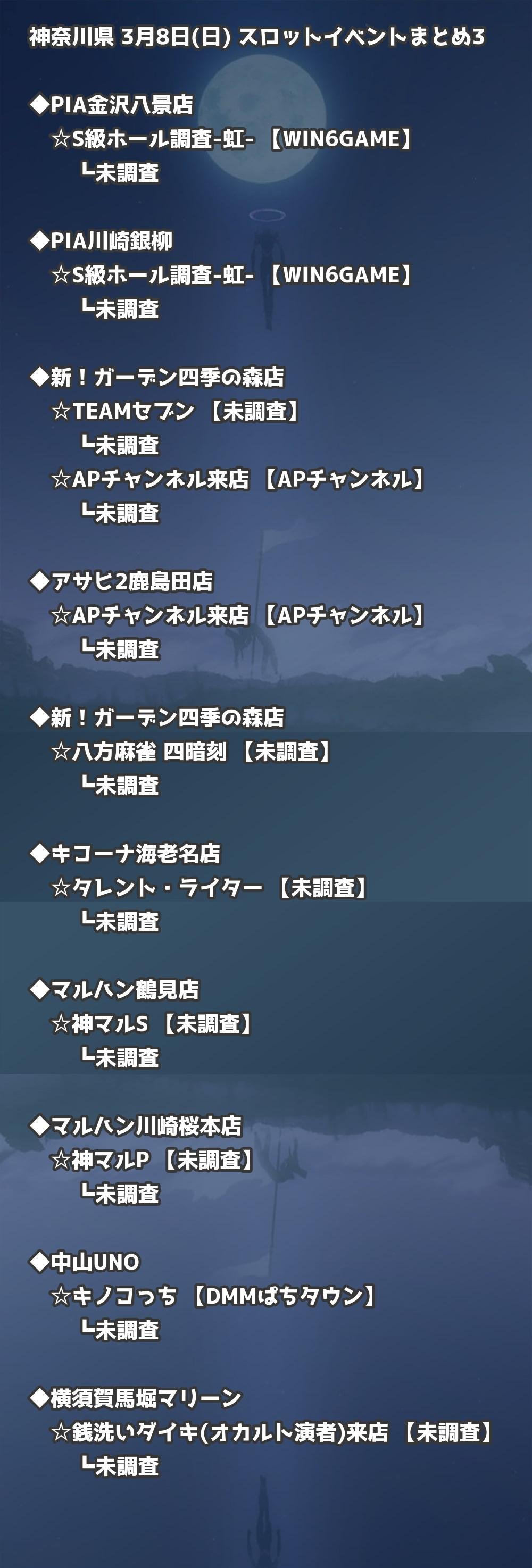 【神奈川県】3月8日(日) パチンコホールイベント取材まとめ記事です。