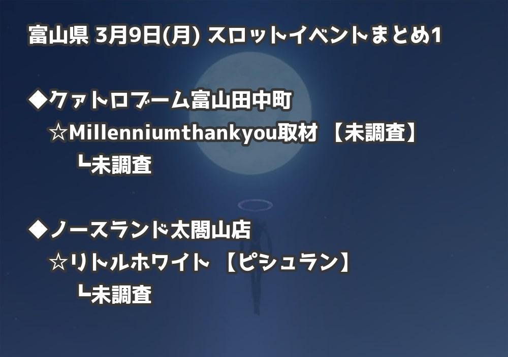 【富山県】3月9日(月) パチンコホールイベント取材まとめ記事です。
