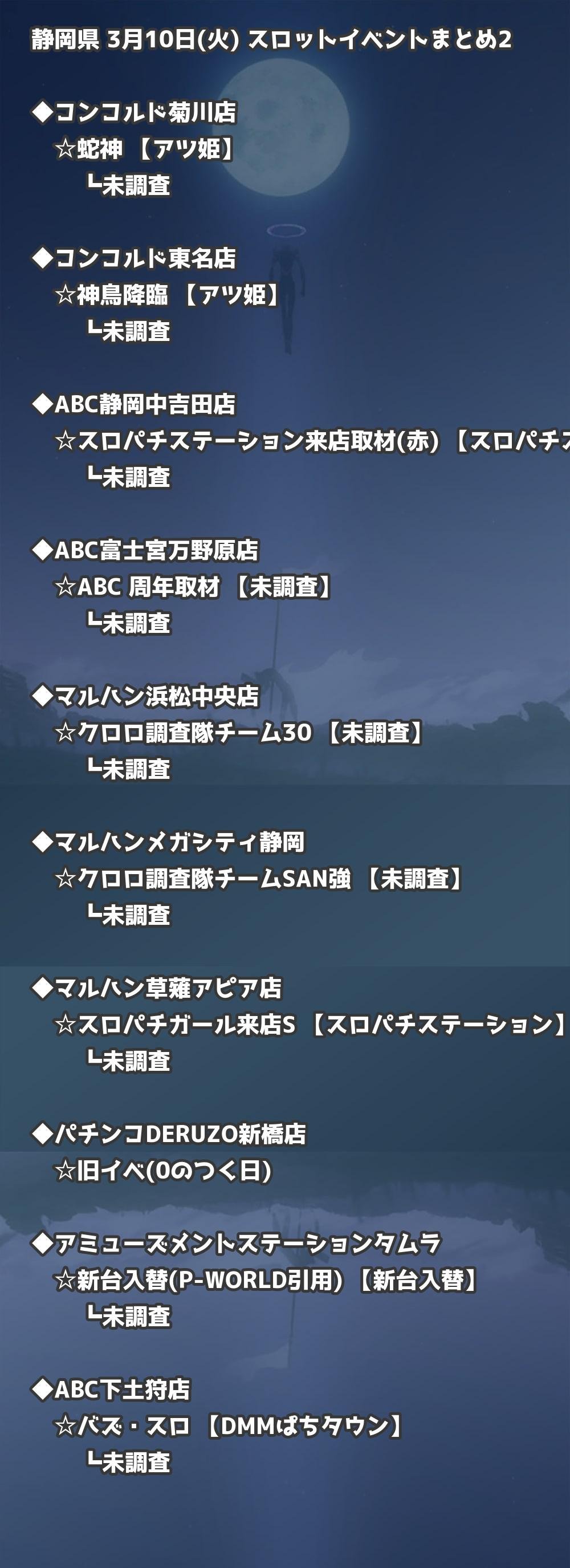 📊 静岡県 3月10日(火) 勝てるパチンコ・スロット取材店舗一覧|おすすめ順