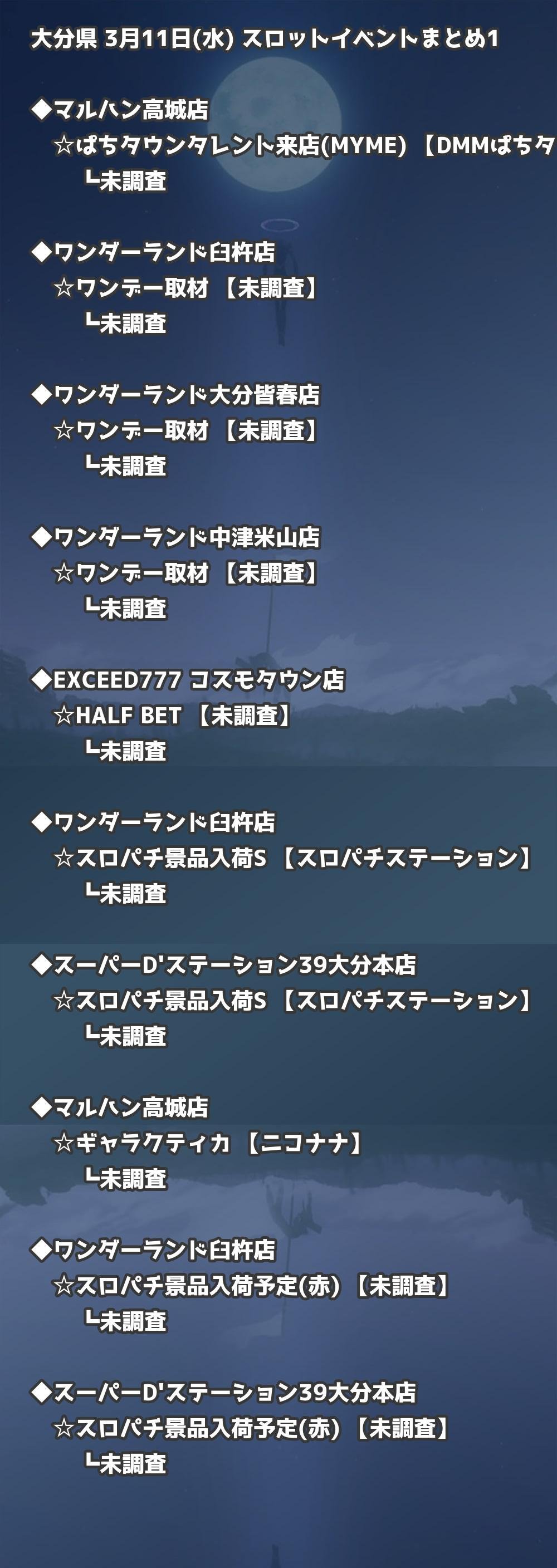 📊 大分県 3月11日(水) 勝てるパチンコ・スロット取材店舗一覧|おすすめ順
