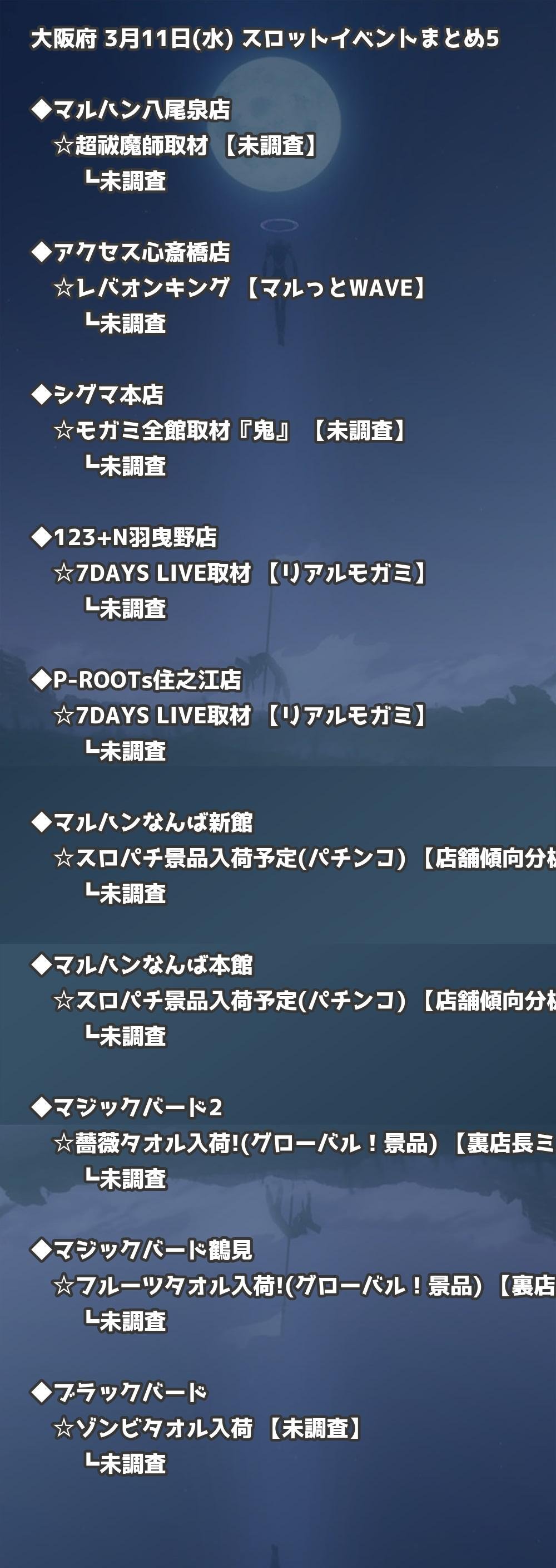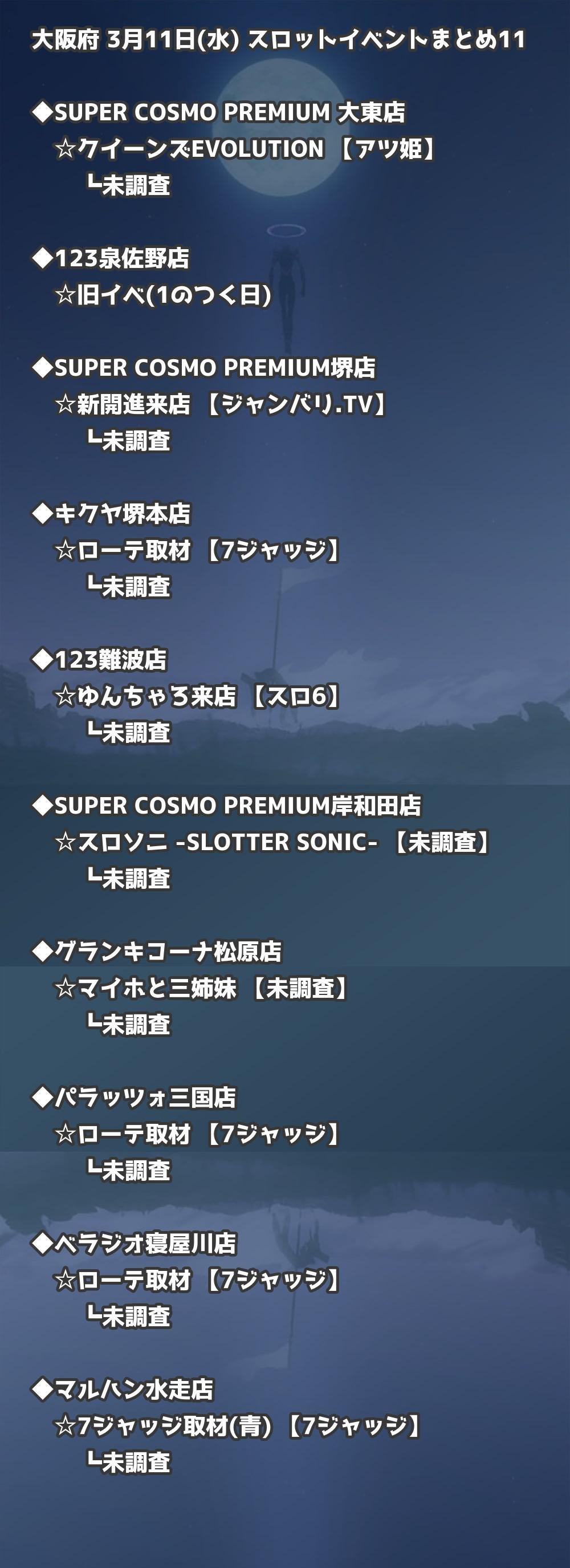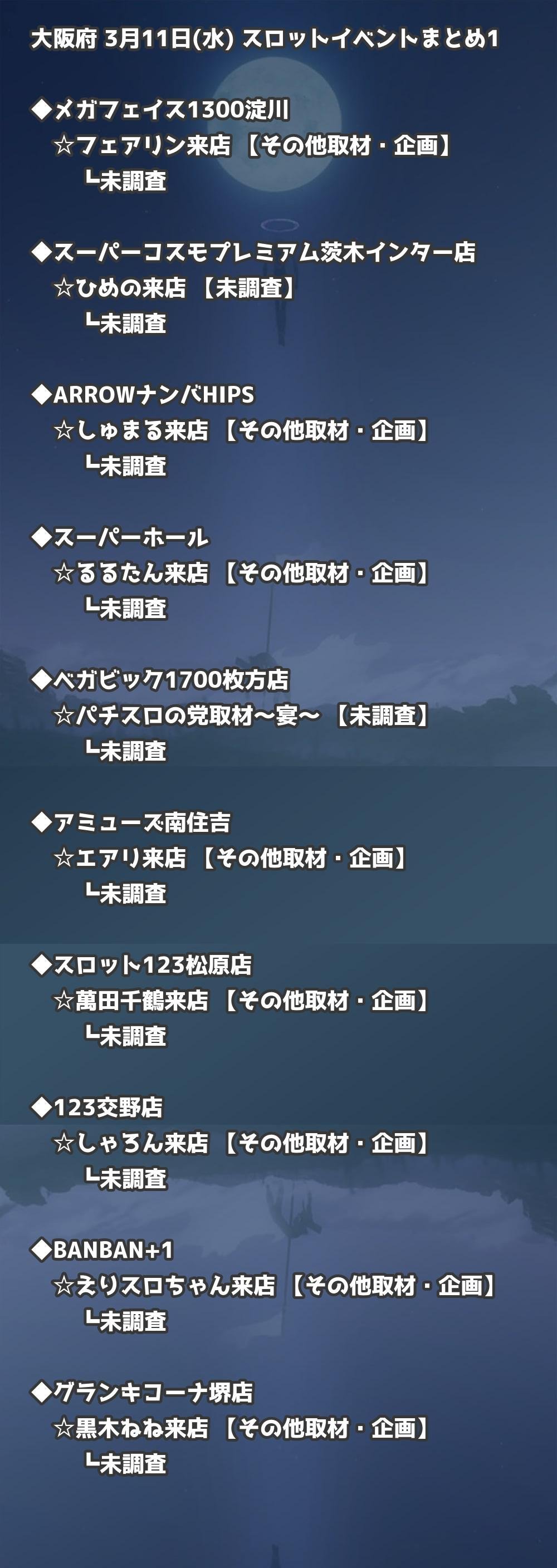 【大阪府】3月11日(水) パチンコホールイベント取材まとめ記事です。