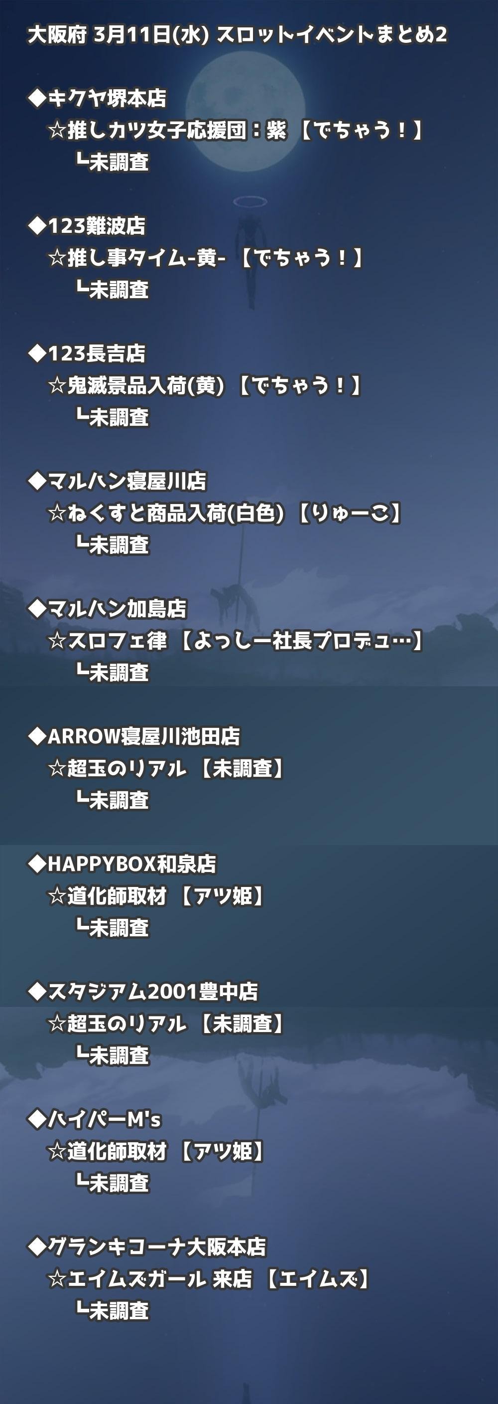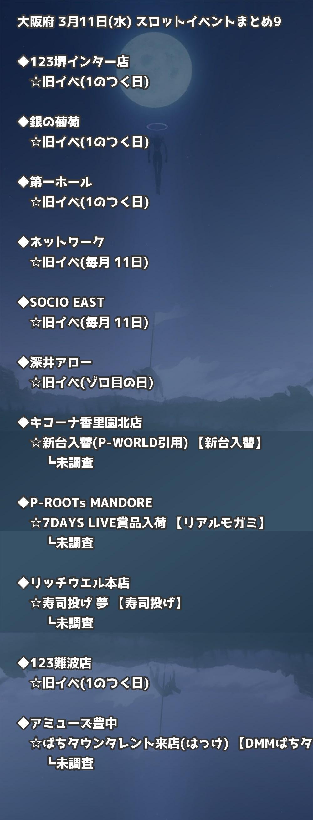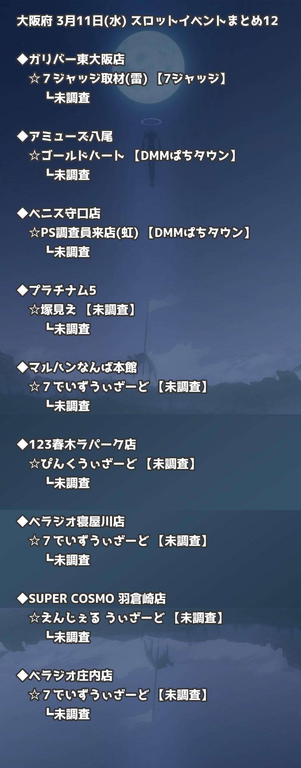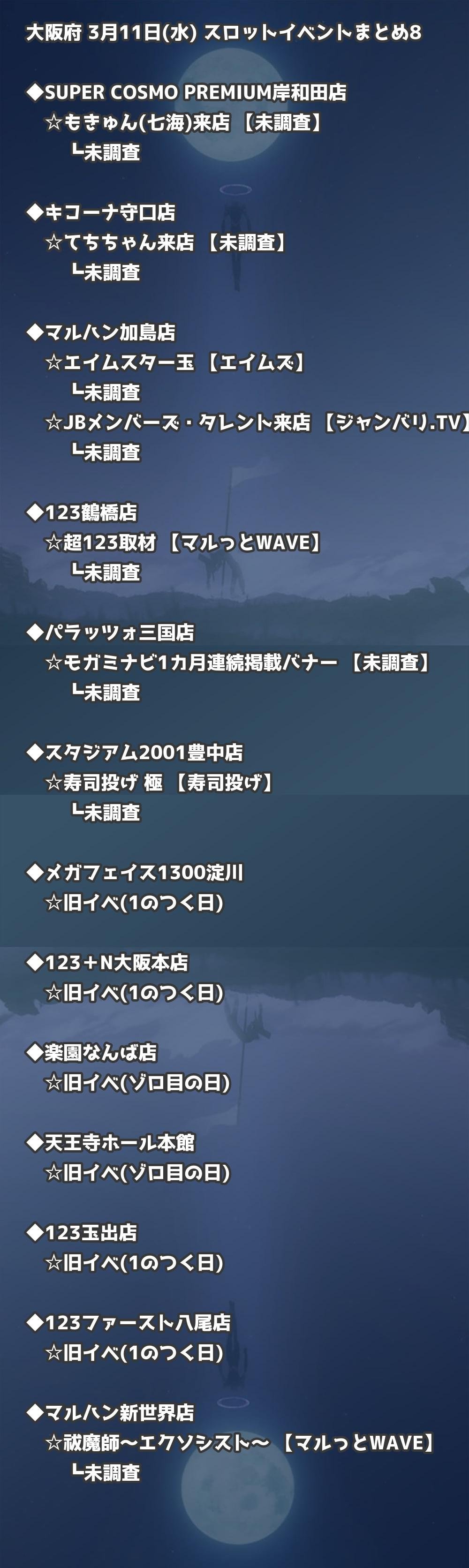 【大阪府】3月11日(水) パチンコホールイベント取材まとめ記事です。