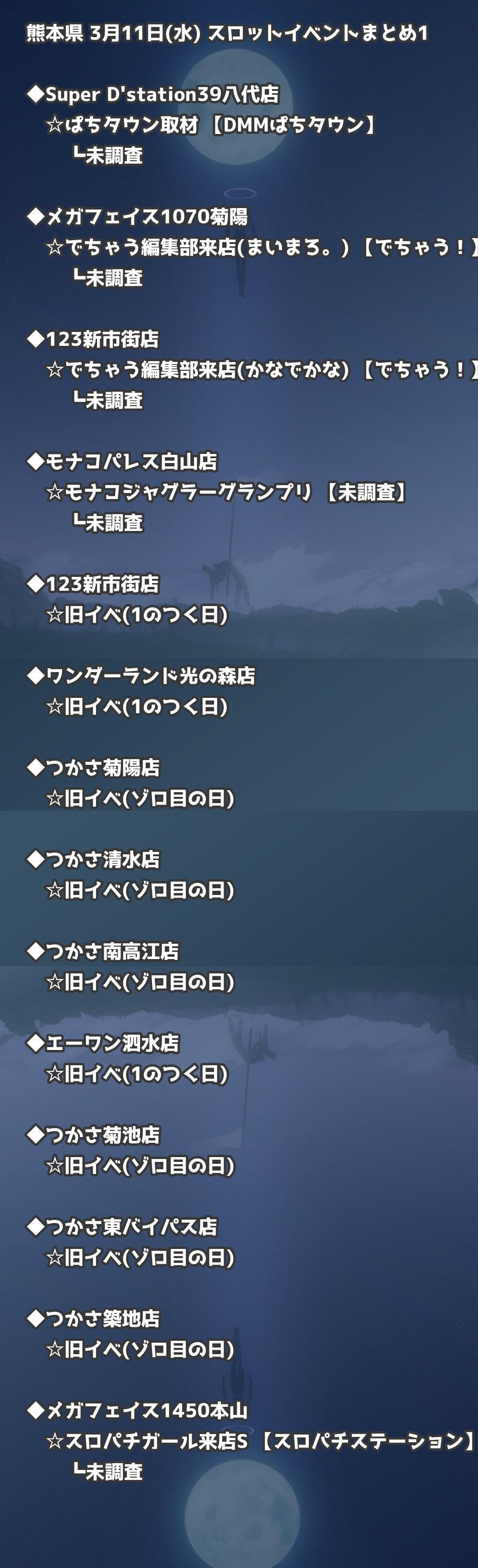 【熊本県】3月11日(水) パチンコホールイベント取材まとめ記事です。