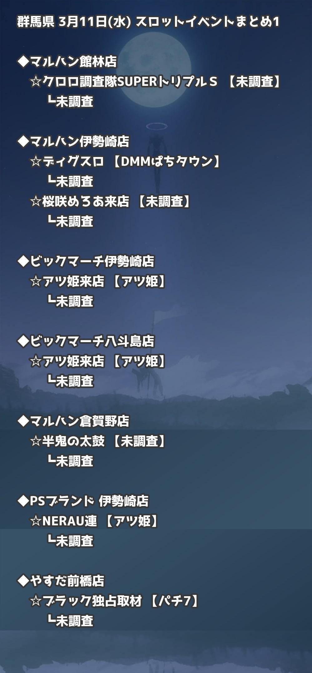 📊 群馬県 3月11日(水) 勝てるパチンコ・スロット取材店舗一覧|おすすめ順