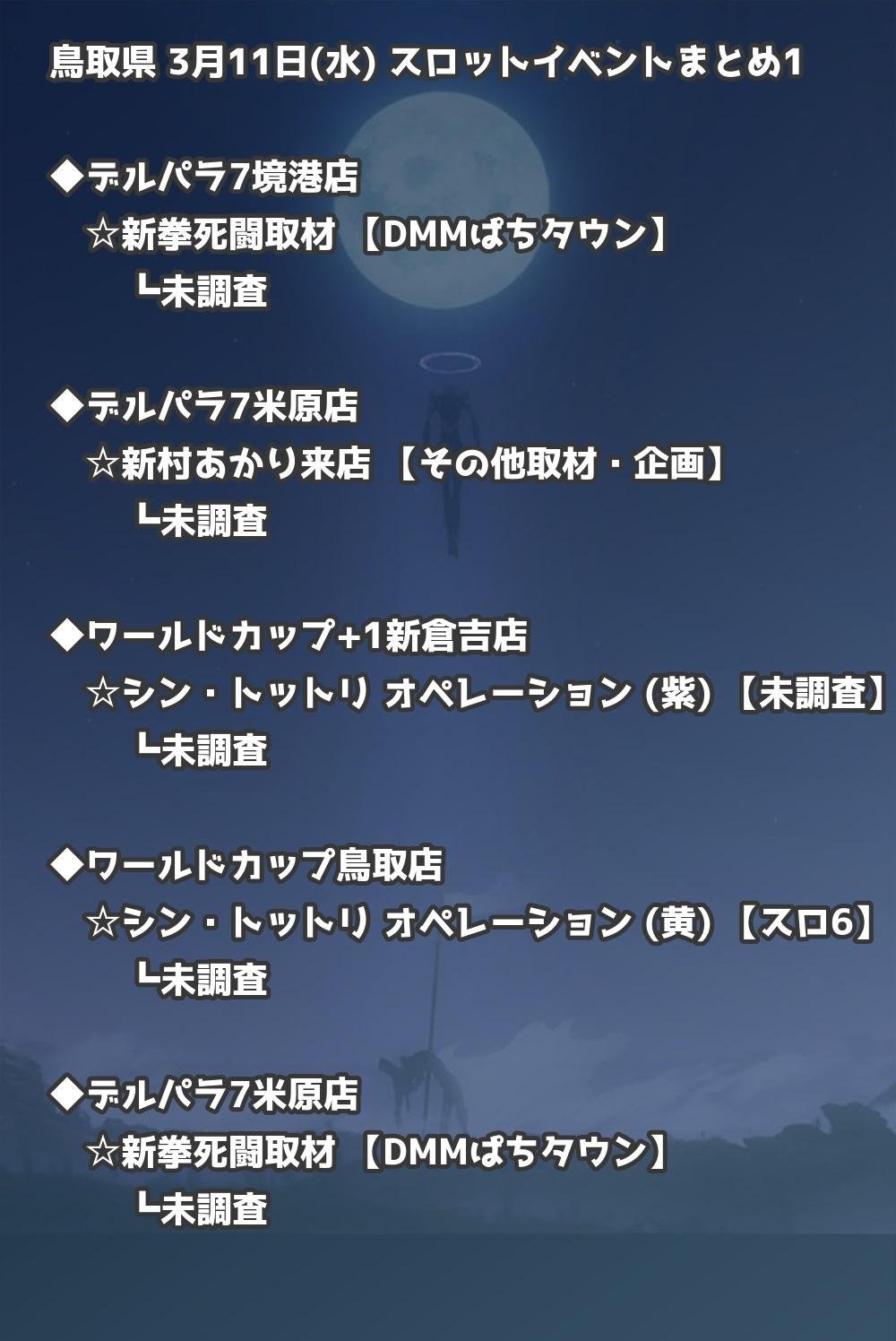 【鳥取県】3月11日(水) パチンコホールイベント取材まとめ記事です。