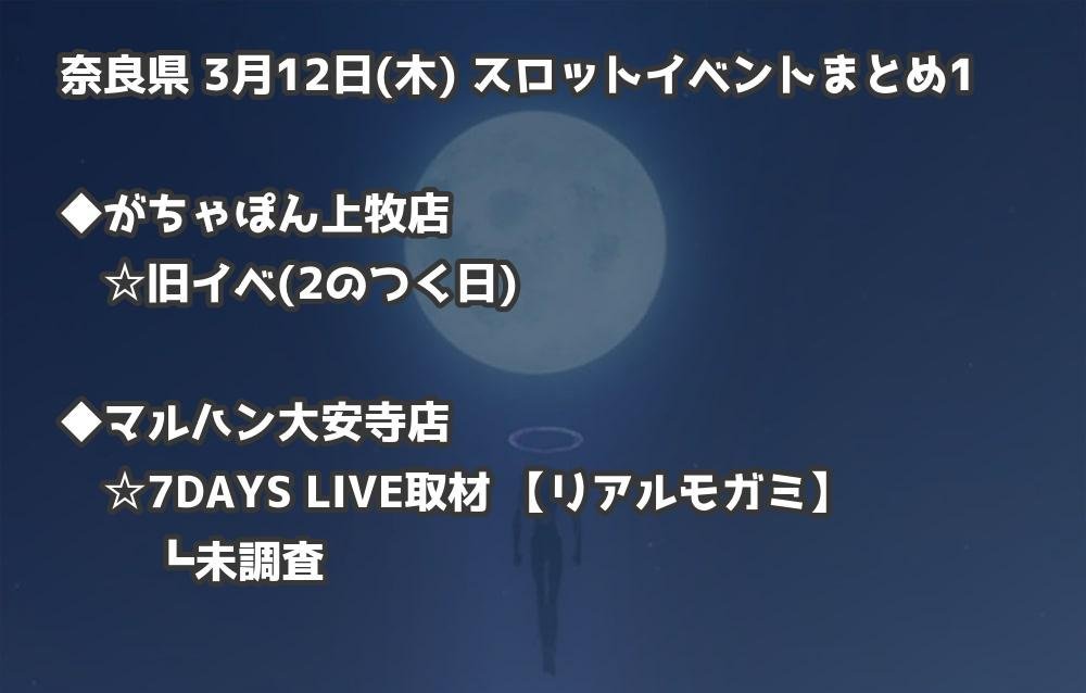 【奈良県】3月12日(木) パチンコホールイベント取材まとめ記事です。