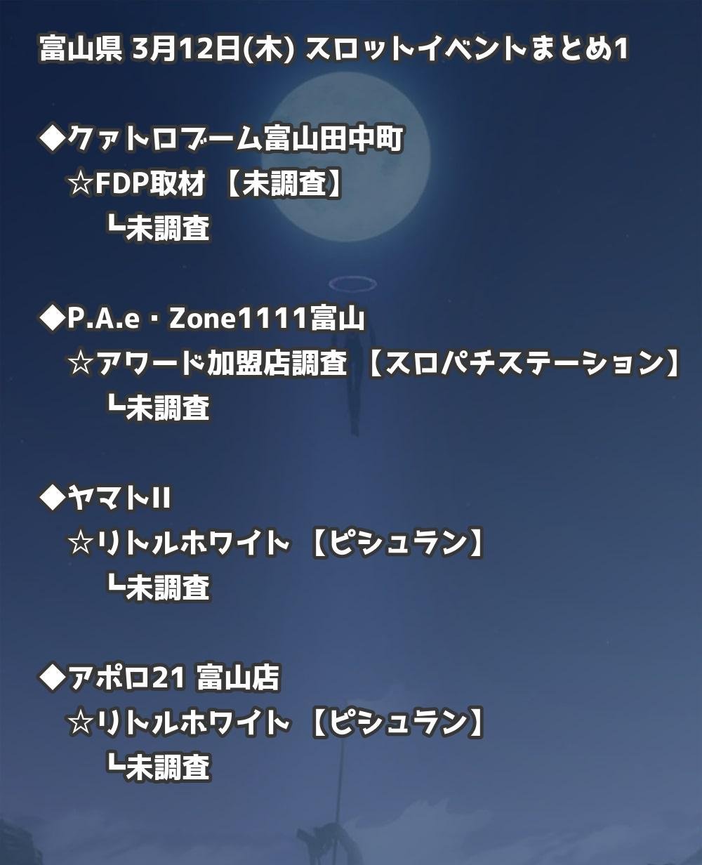 【富山県】3月12日(木) パチンコホールイベント取材まとめ記事です。