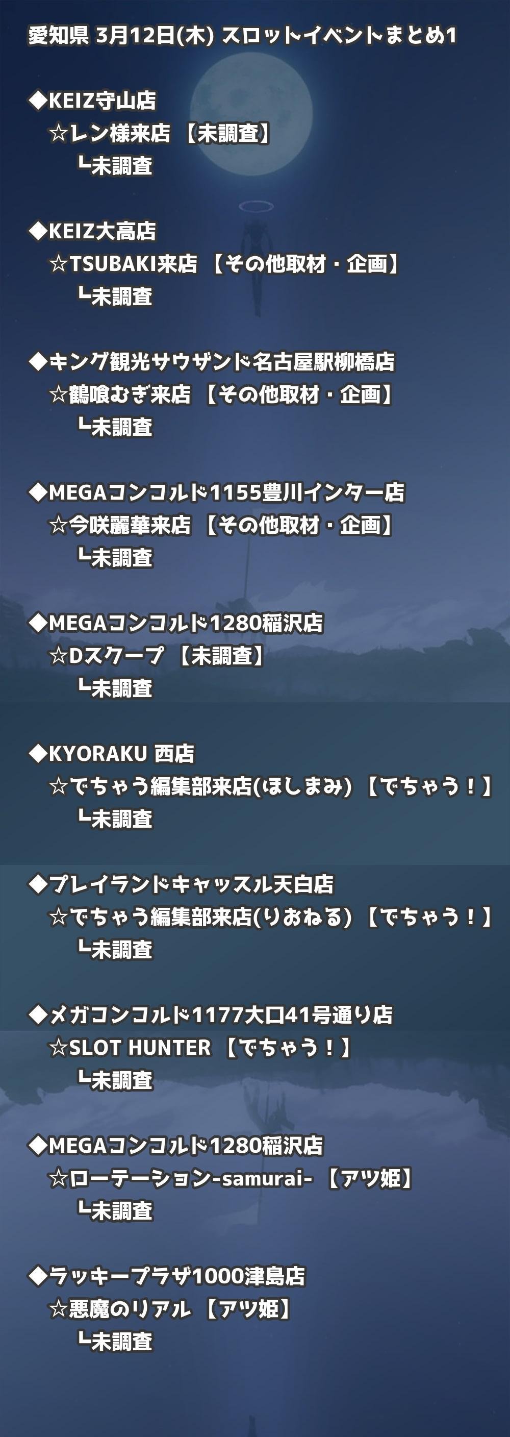 ※店舗結果掲載済 【愛知】3月12日(木) 今日のスロット・パチンコ激熱イベント取材まとめ