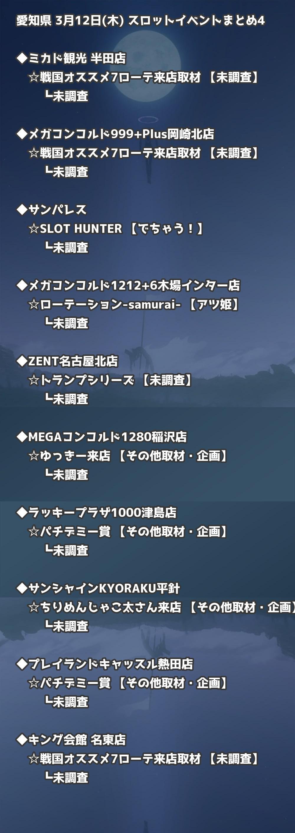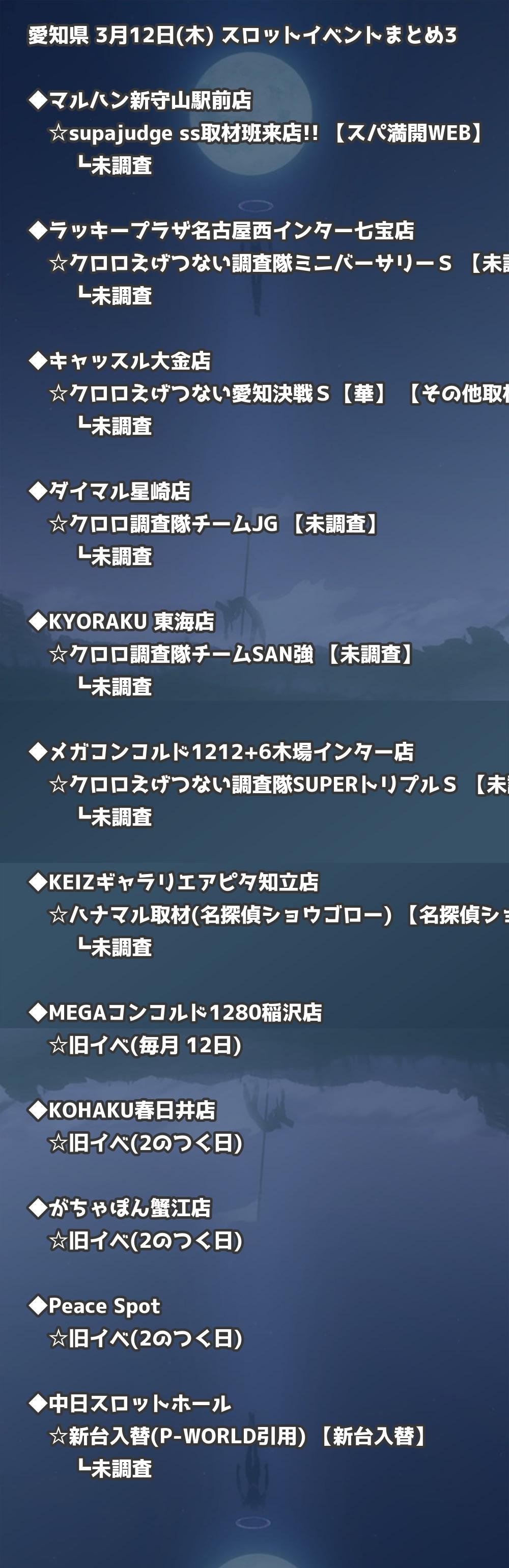 【愛知県】3月12日(木) パチンコホールイベント取材まとめ記事です。