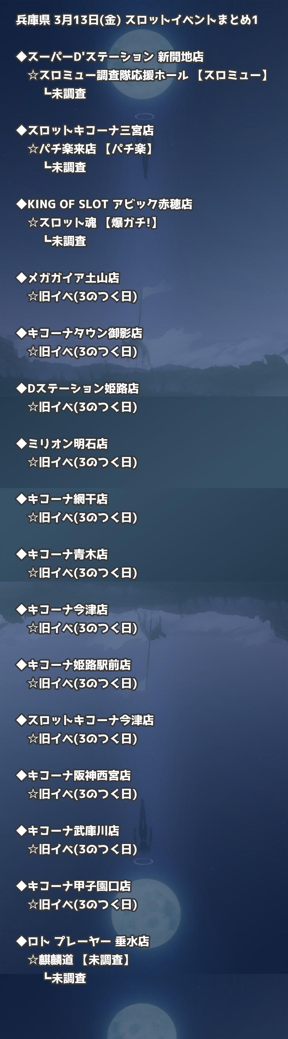 3月13日(金) 兵庫県のTOP20の結果を掲載しています。タップで上位機種など詳細が見れます。