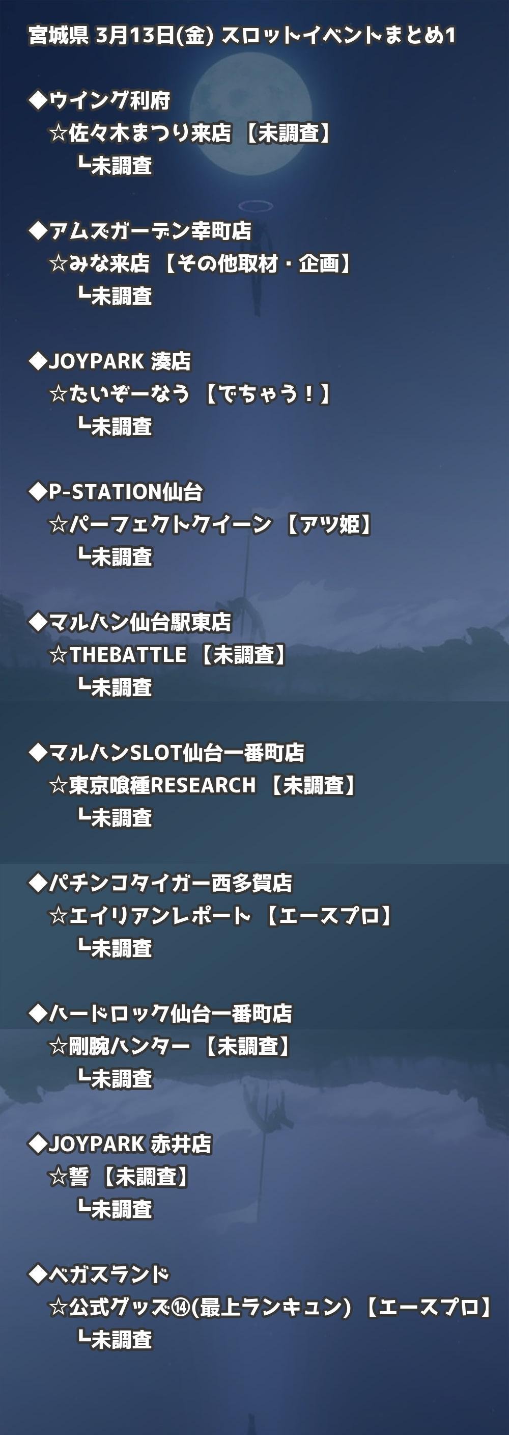 【宮城県】3月13日(金) パチンコホールイベント取材まとめ記事です。