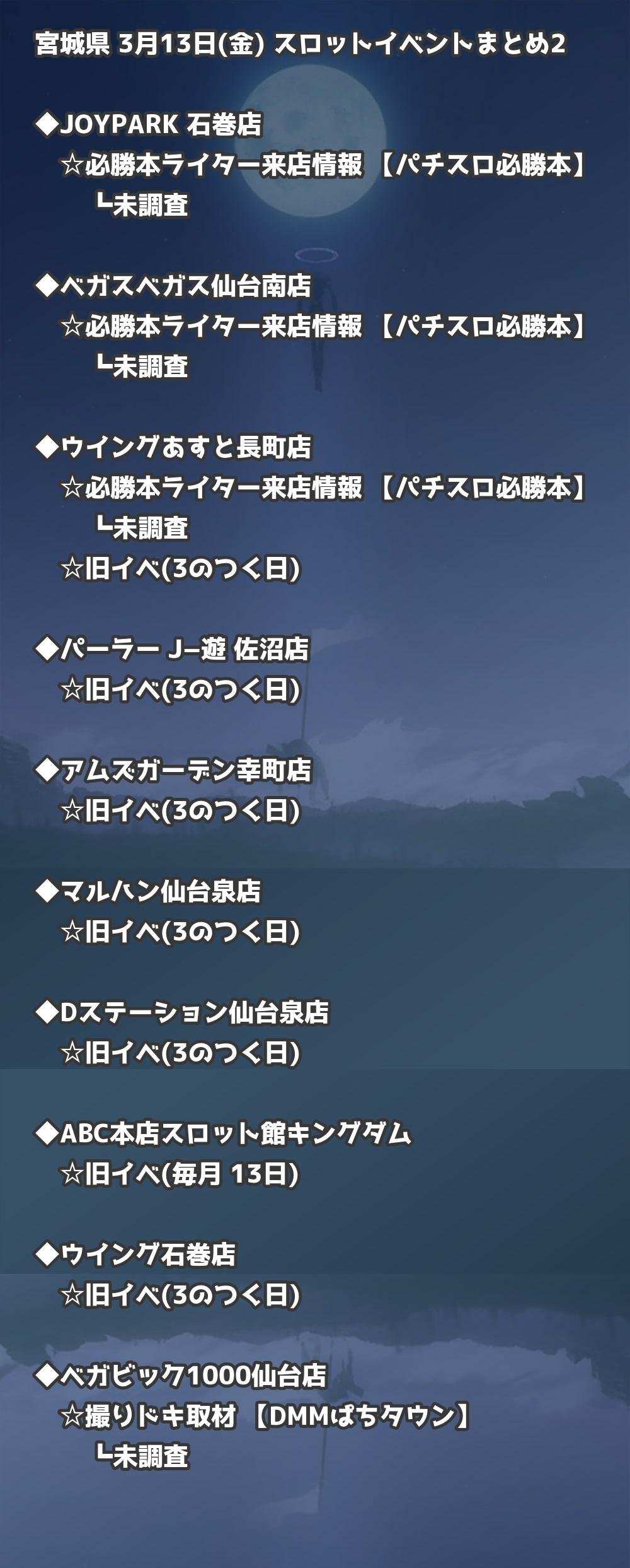 📊 宮城県 3月13日(金) 勝てるパチンコ・スロット取材店舗一覧|おすすめ順