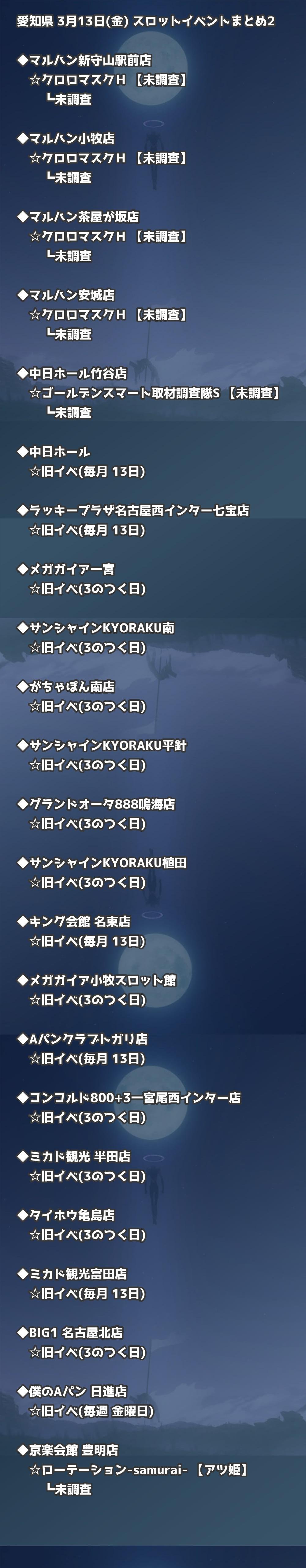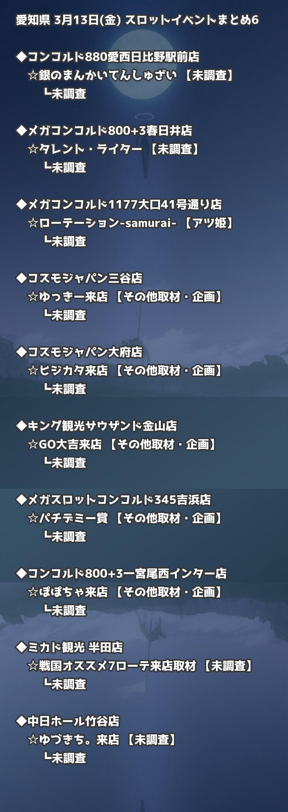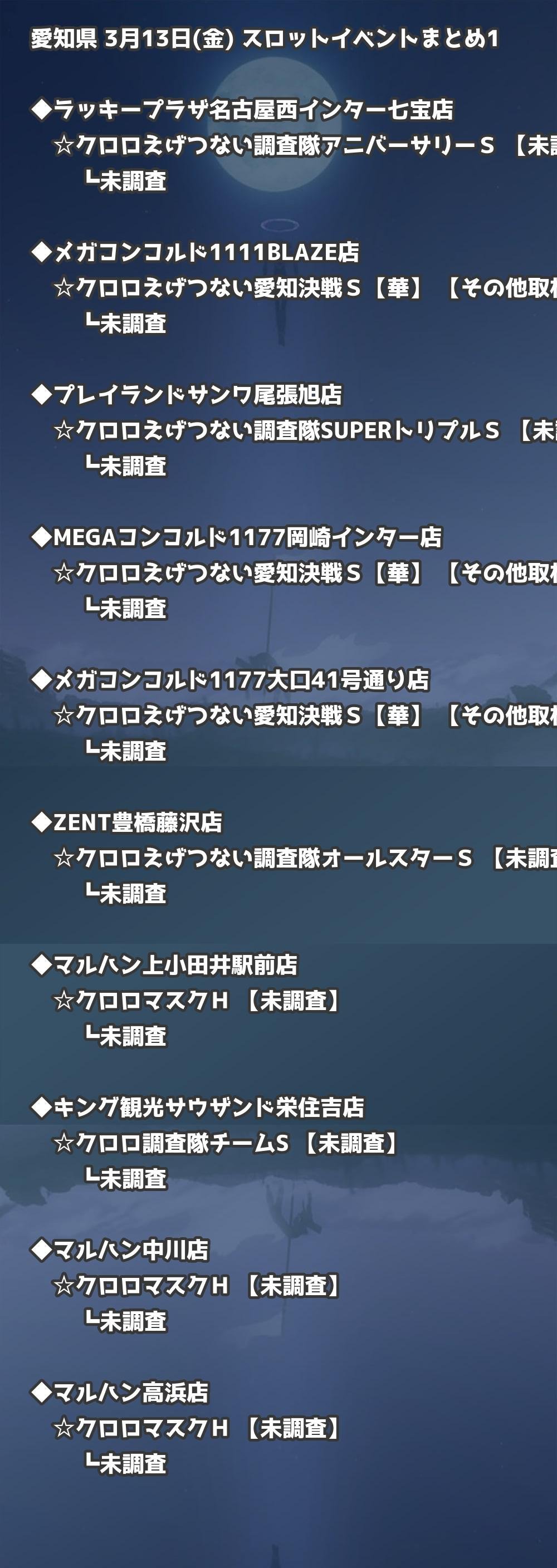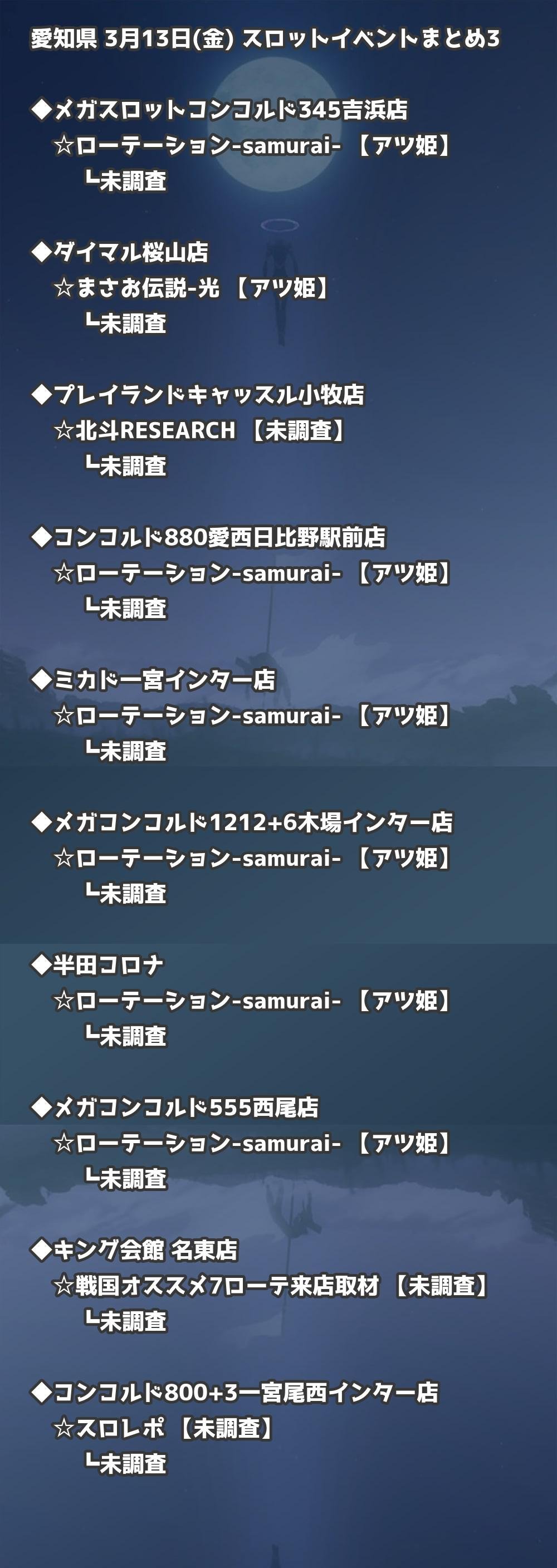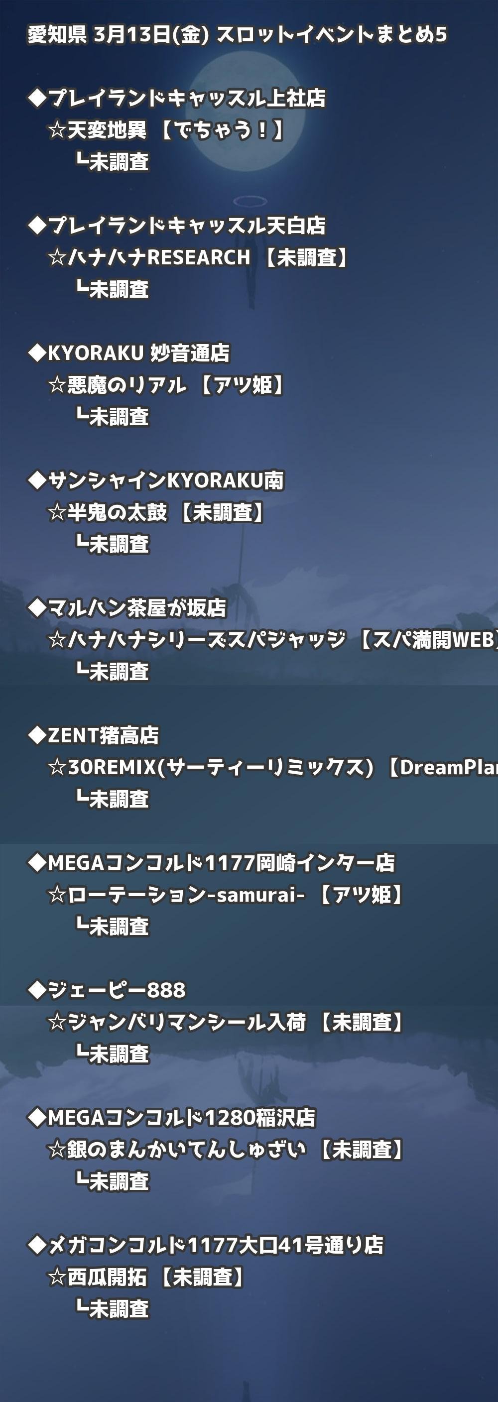 3月13日(金) 愛知県のTOP20の結果を掲載しています。タップで上位機種など詳細が見れます。