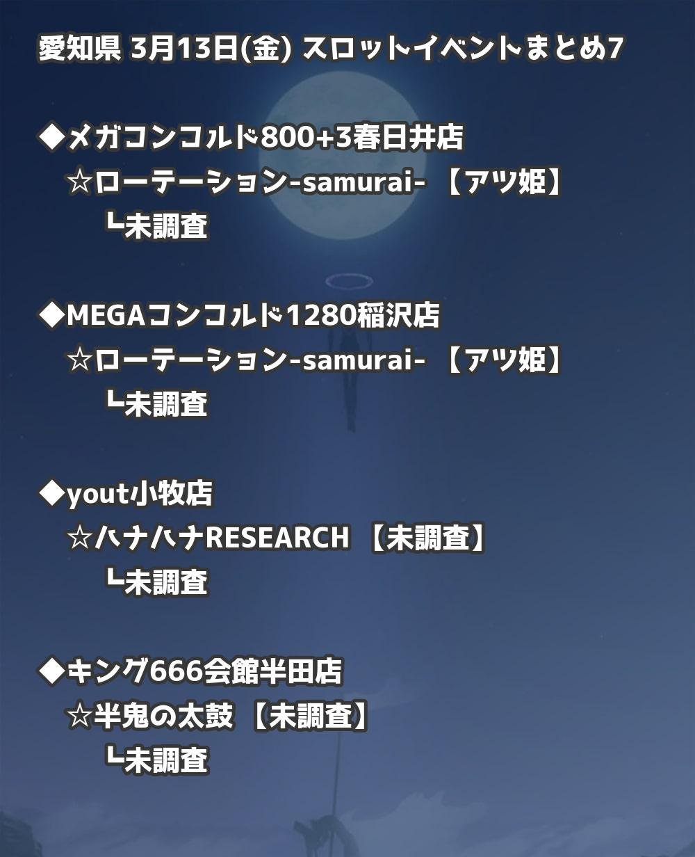 | メガコンコルド999+Plus岡崎北店 | 戦国オススメ7ローテ来店取材 | 未調査 |