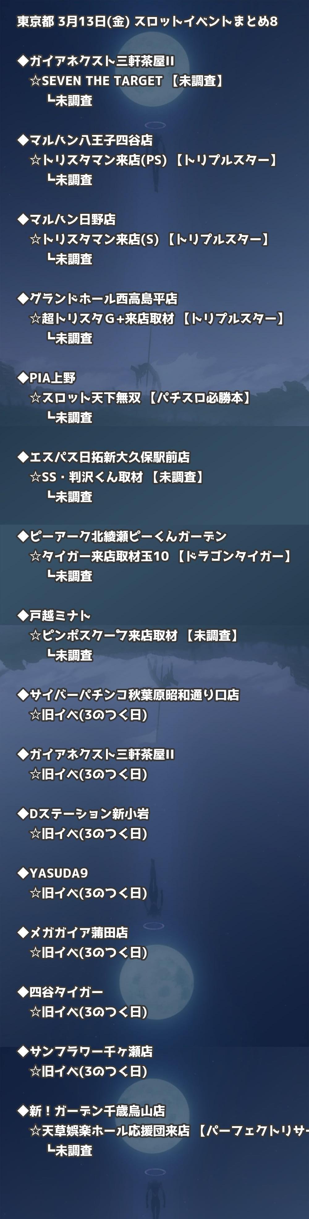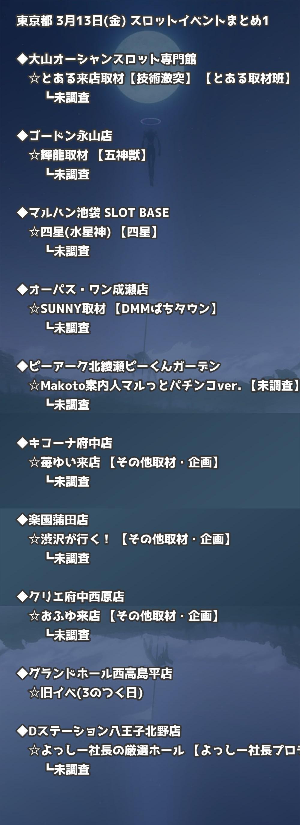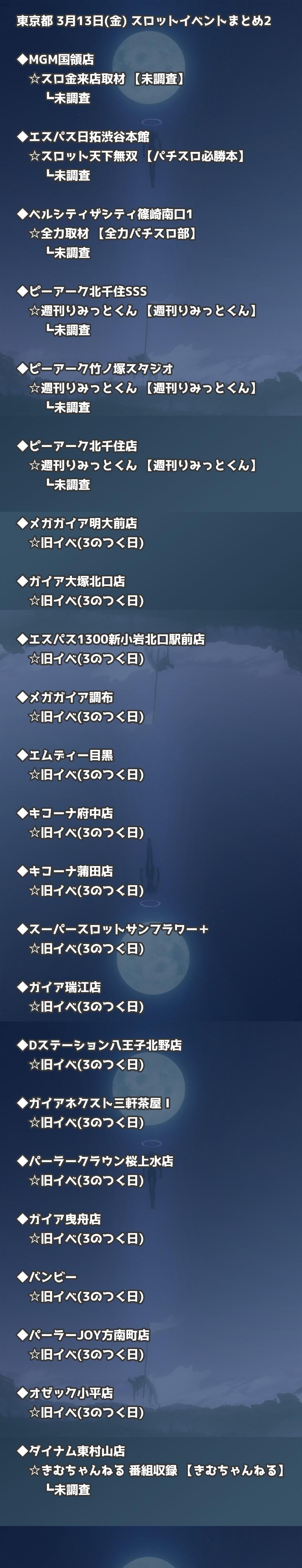 【東京都】3月13日(金) パチンコホールイベント取材まとめ記事です。