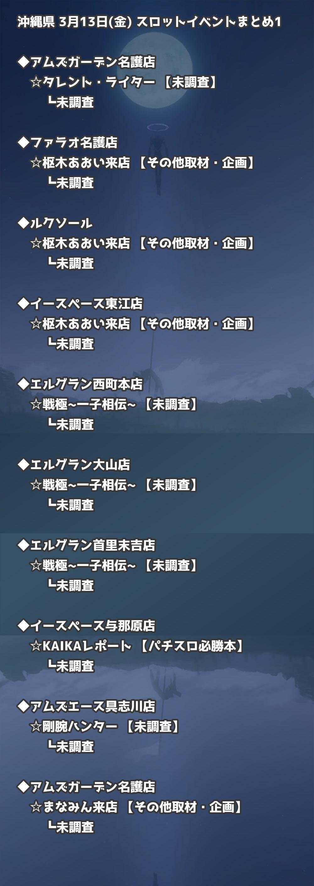 【沖縄県】3月13日(金) パチンコホールイベント取材まとめ記事です。