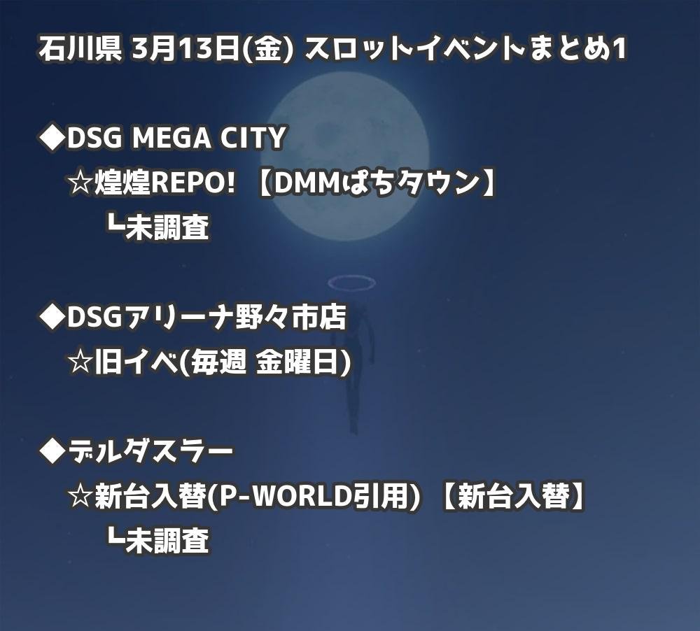 【石川県】3月13日(金) パチンコホールイベント取材まとめ記事です。