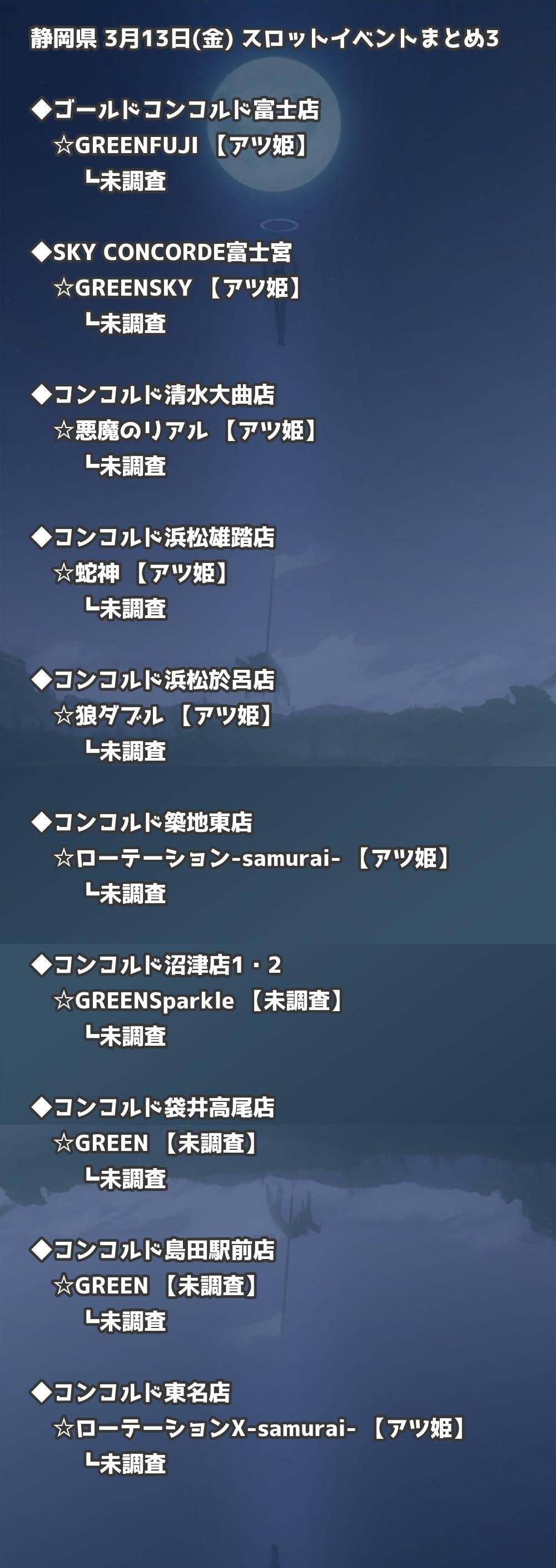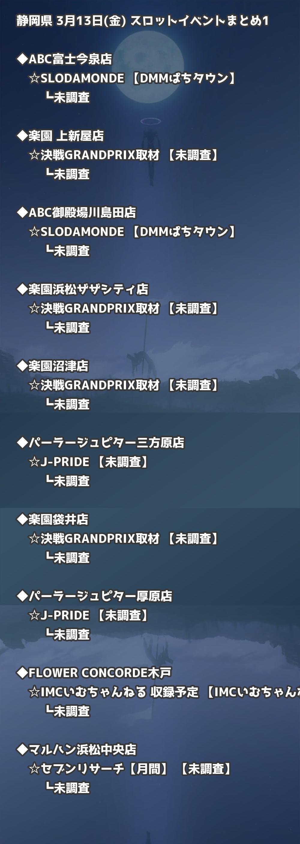 📊 静岡県 3月13日(金) 勝てるパチンコ・スロット取材店舗一覧|おすすめ順