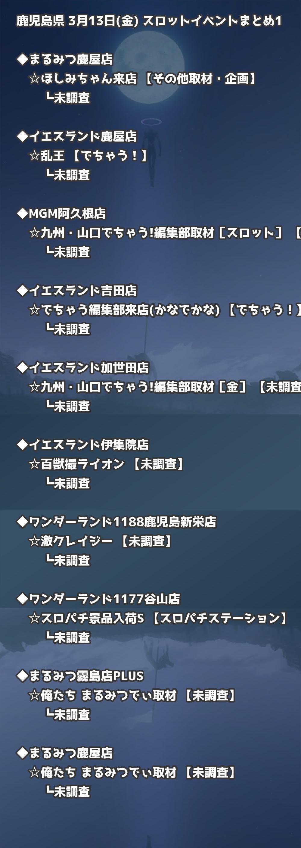 📊 鹿児島県 3月13日(金) 勝てるパチンコ・スロット取材店舗一覧|おすすめ順
