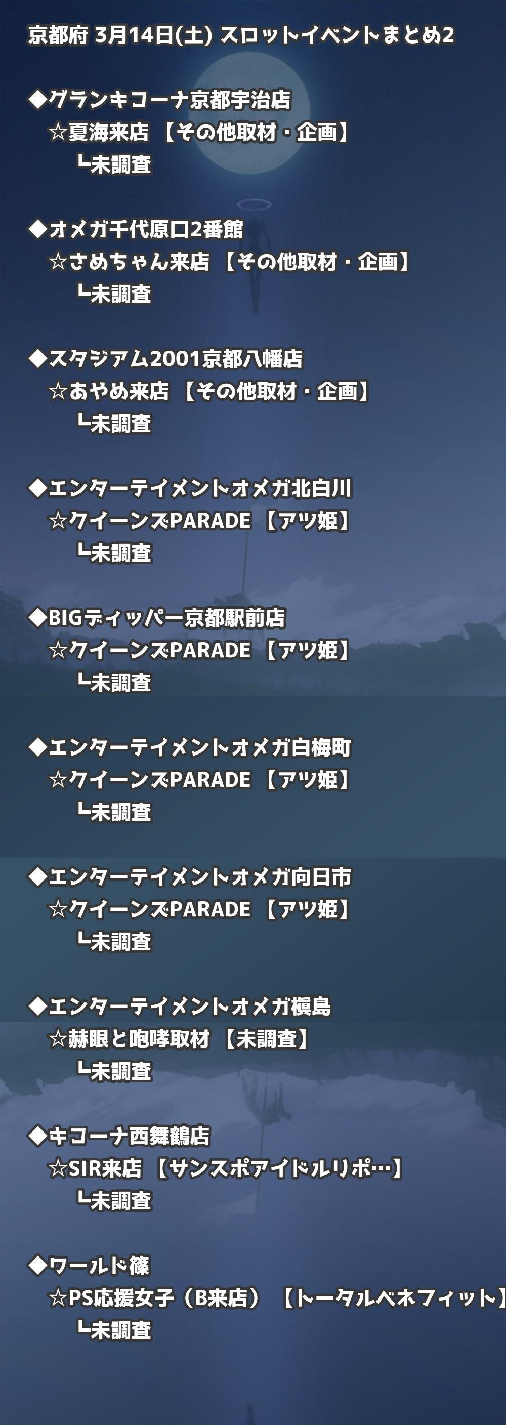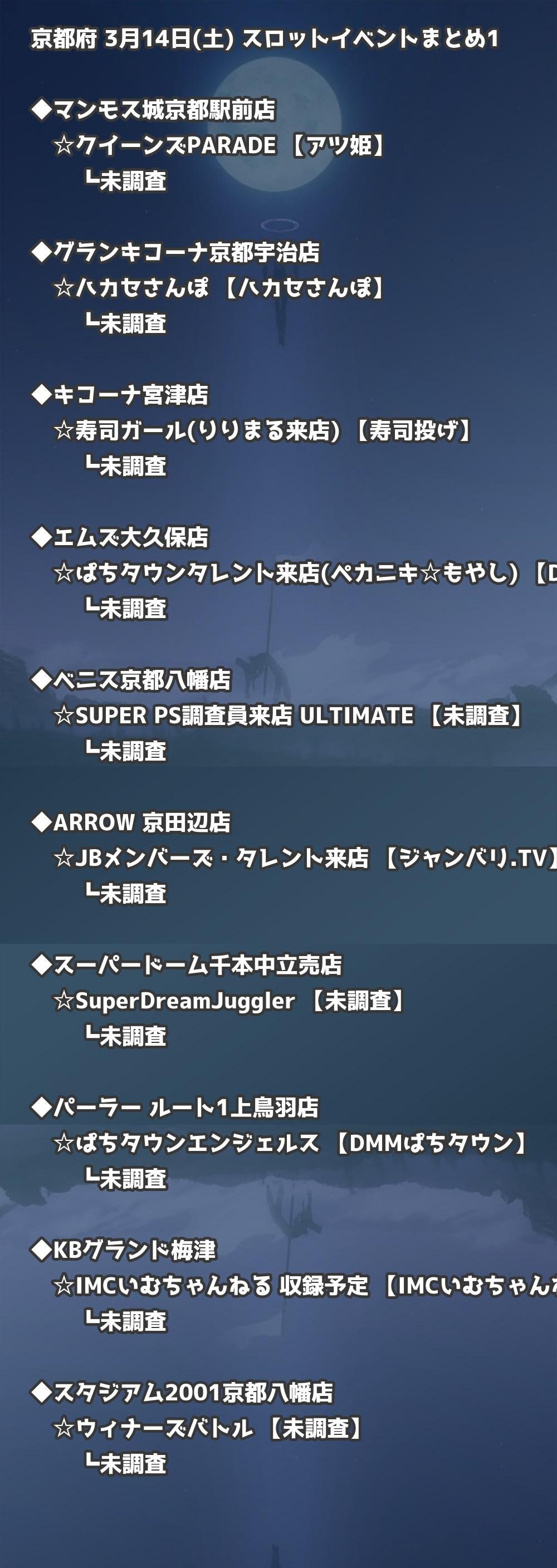 📊 京都府 3月14日(土) 勝てるパチンコ・スロット取材店舗一覧|おすすめ順