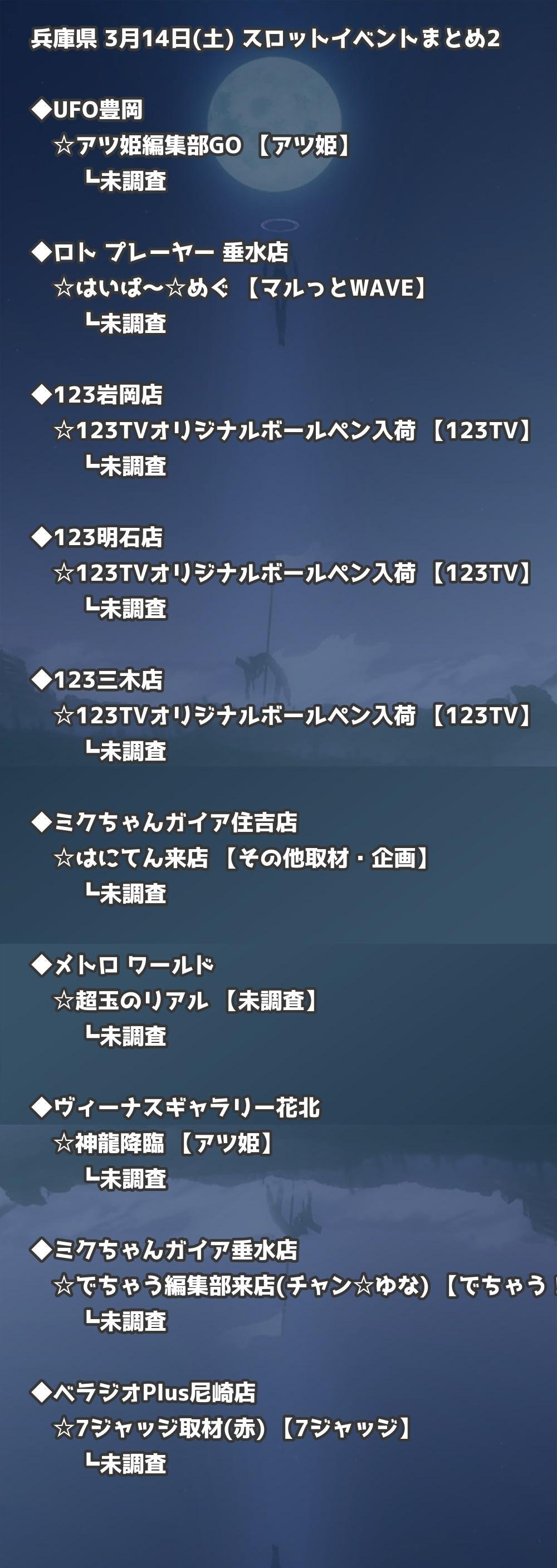 【兵庫県】3月14日(土) パチンコホールイベント取材まとめ記事です。