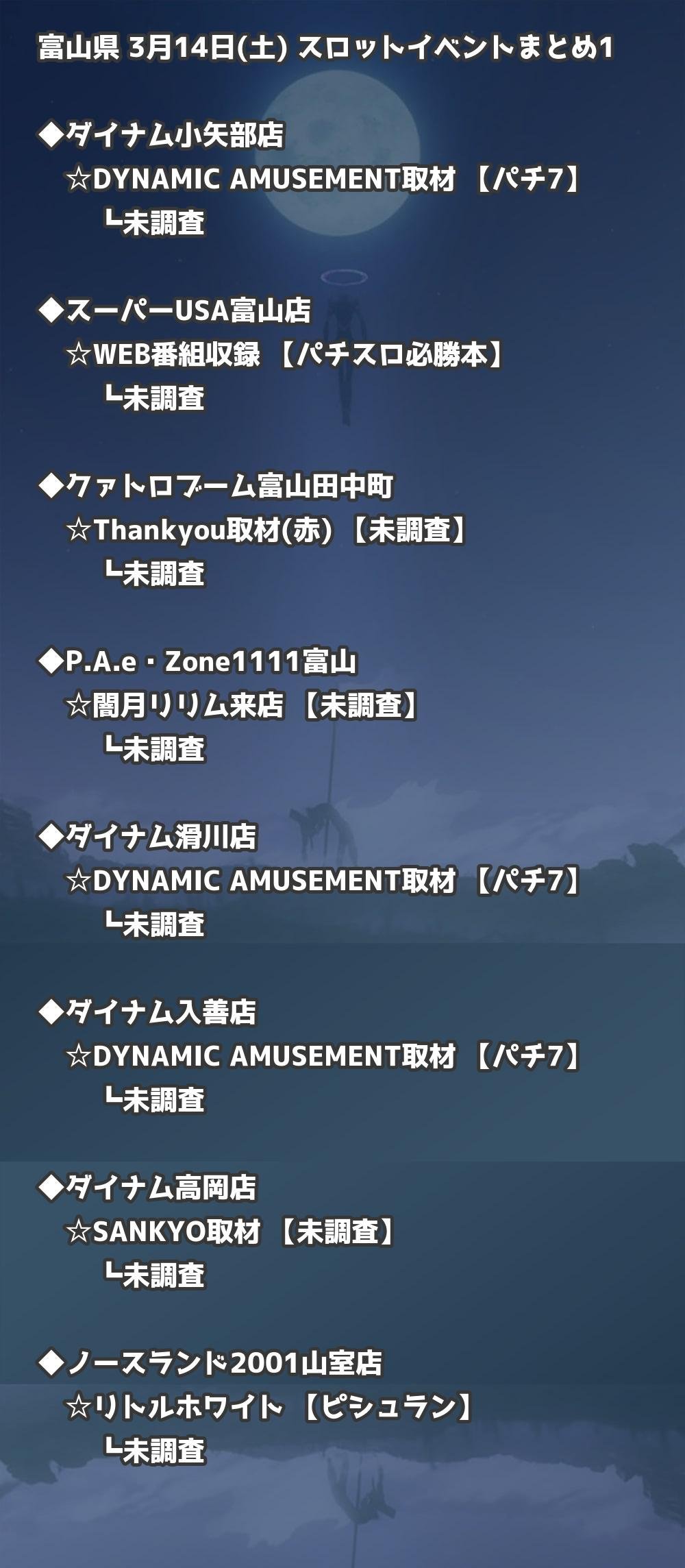 【富山県】3月14日(土) パチンコホールイベント取材まとめ記事です。