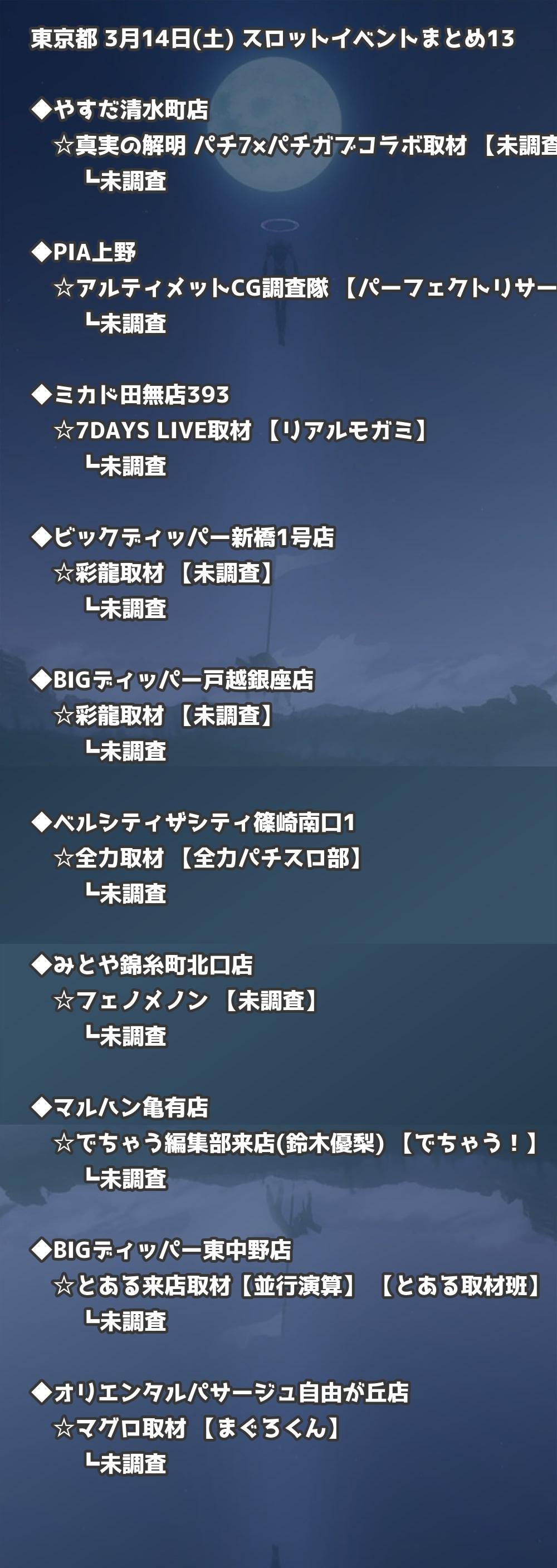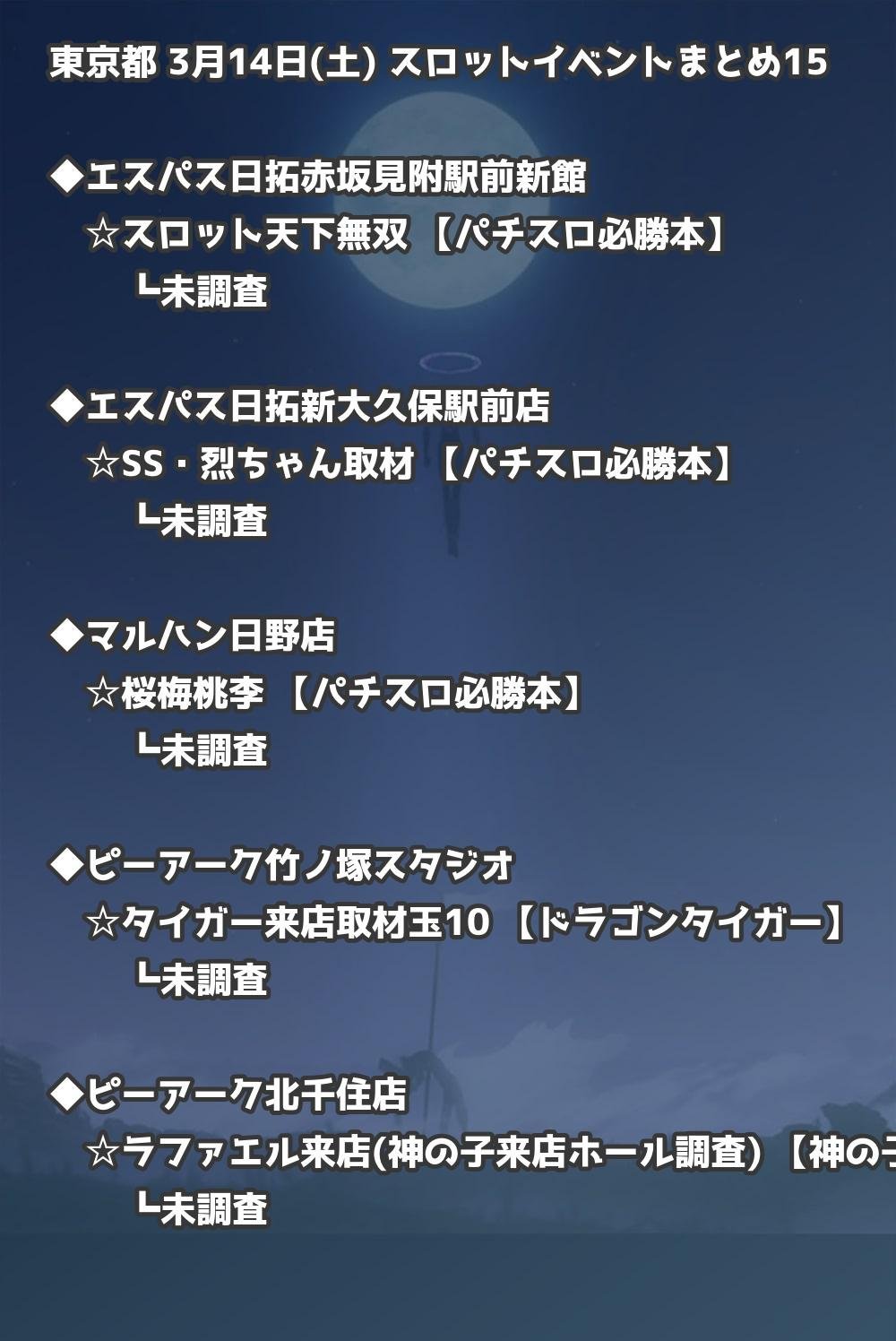 📊 東京都 3月14日(土) 勝てるパチンコ・スロット取材店舗一覧|おすすめ順