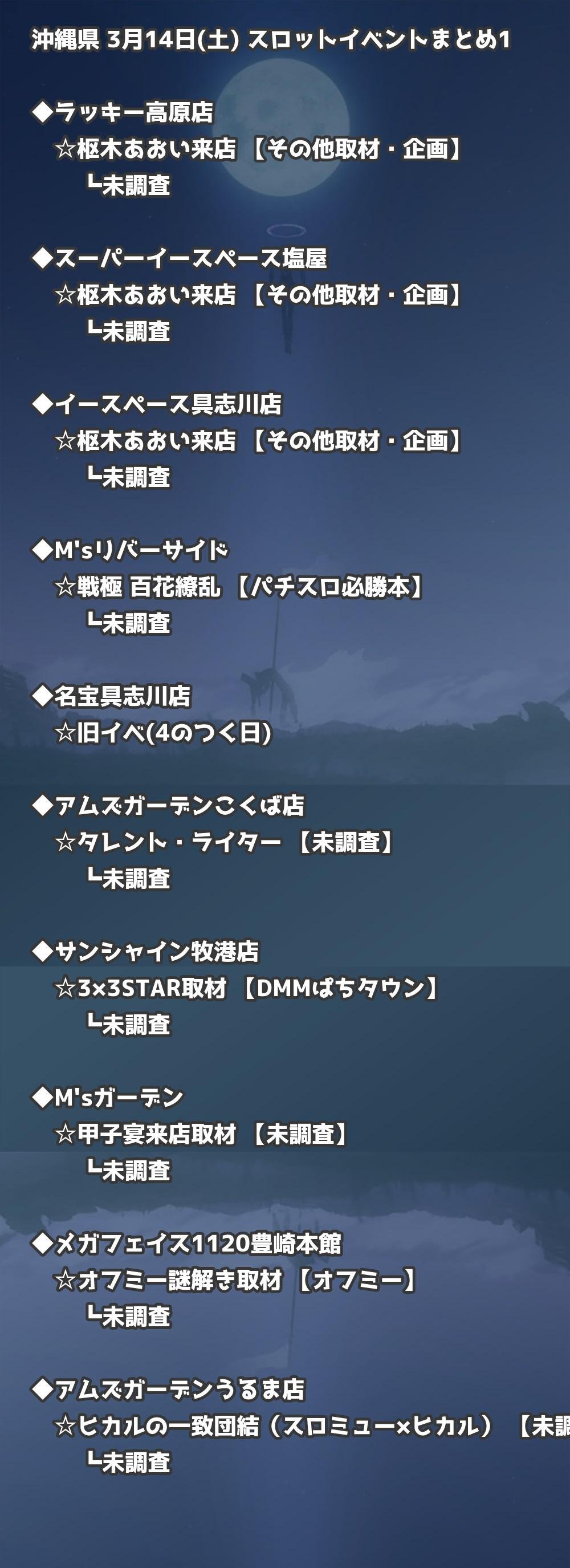 【沖縄県】3月14日(土) パチンコホールイベント取材まとめ記事です。