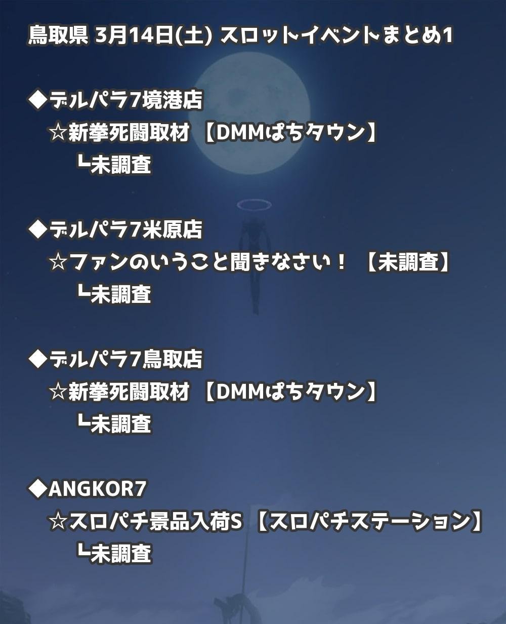 📊 鳥取県 3月14日(土) 勝てるパチンコ・スロット取材店舗一覧|おすすめ順