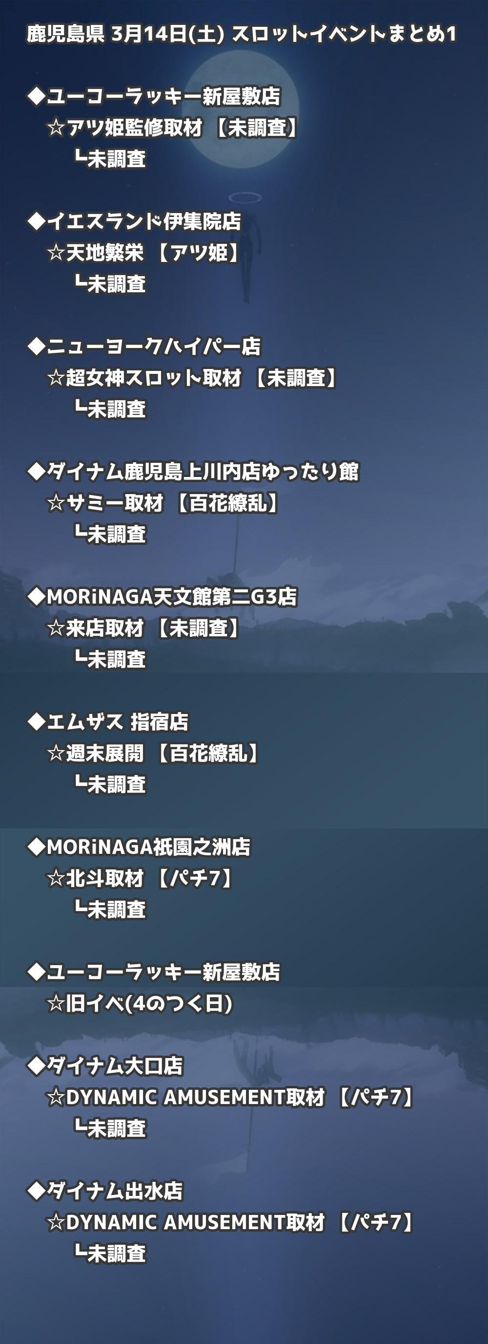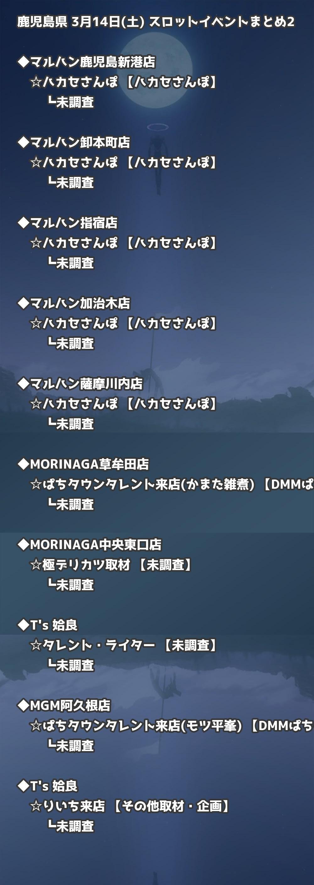📊 鹿児島県 3月14日(土) 勝てるパチンコ・スロット取材店舗一覧|おすすめ順
