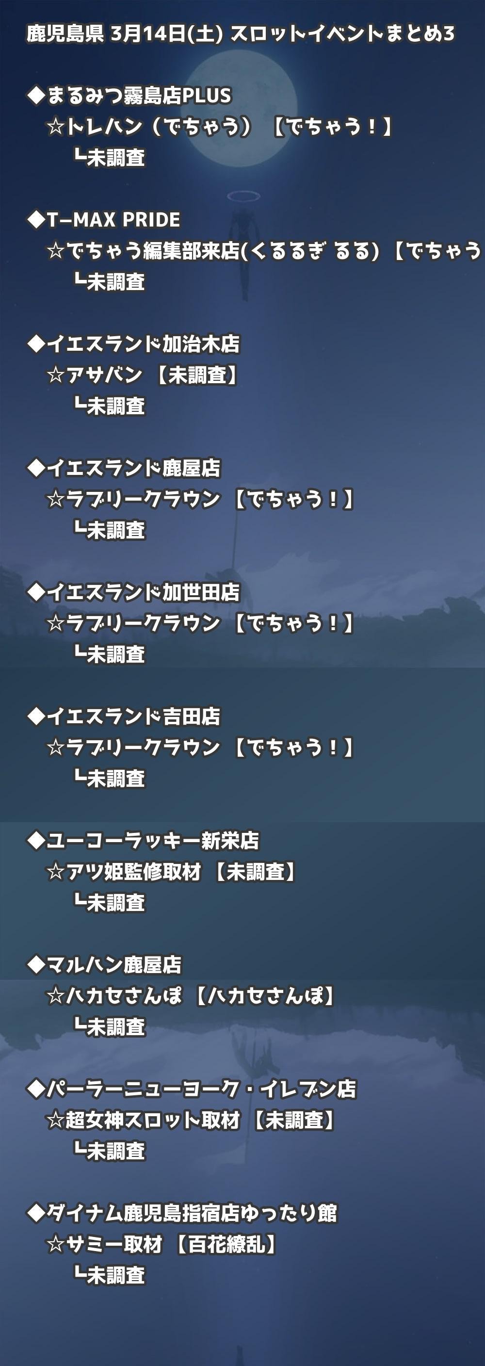 【鹿児島県】3月14日(土) パチンコホールイベント取材まとめ記事です。