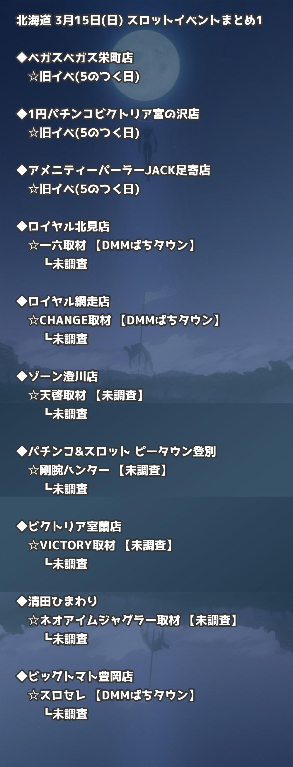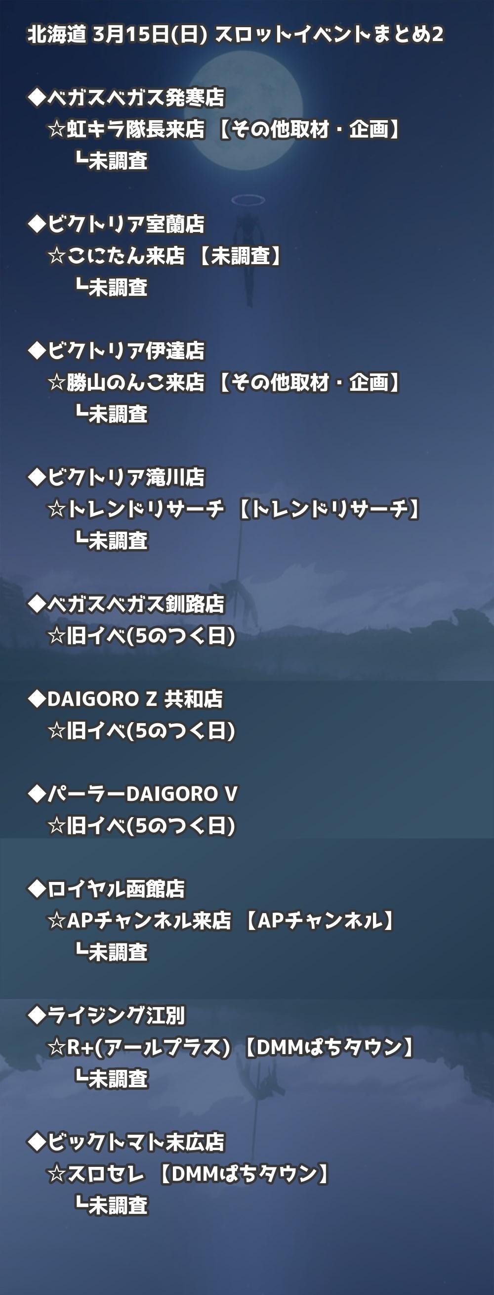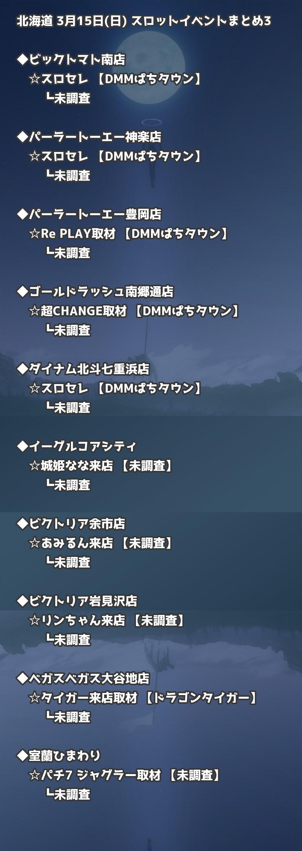 【北海道】3月15日(日) パチンコホールイベント取材まとめ記事です。