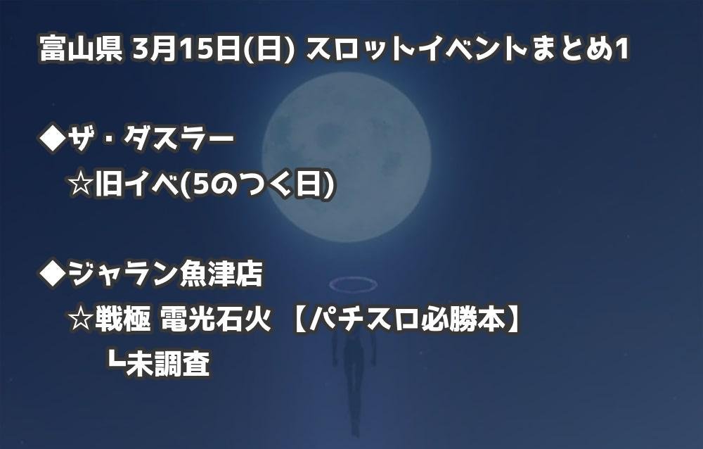 【富山県】3月15日(日) パチンコホールイベント取材まとめ記事です。