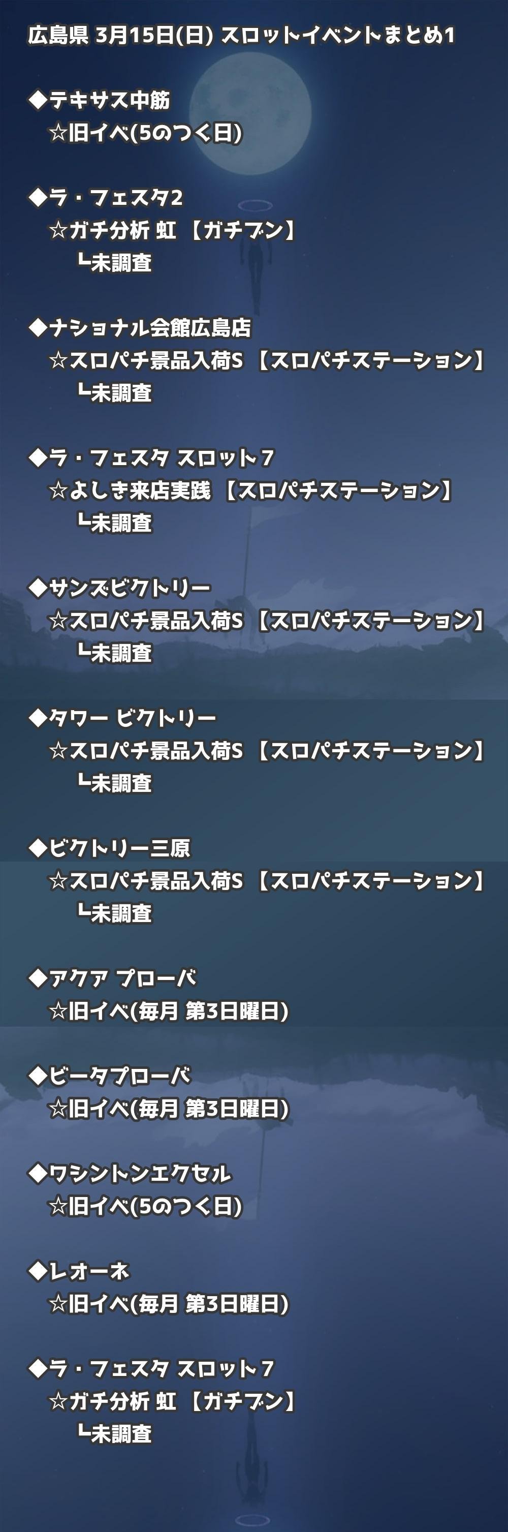 【広島県】3月15日(日) パチンコホールイベント取材まとめ記事です。