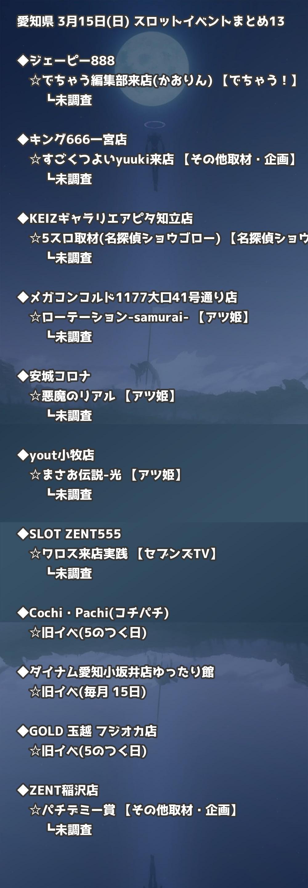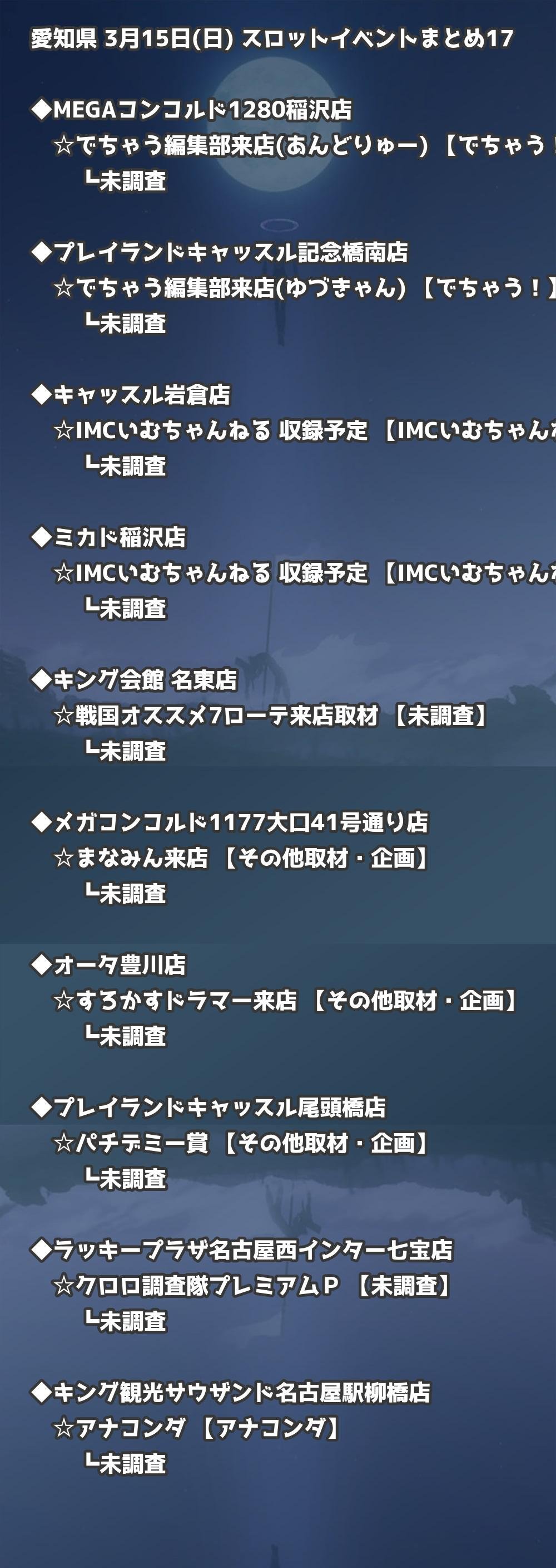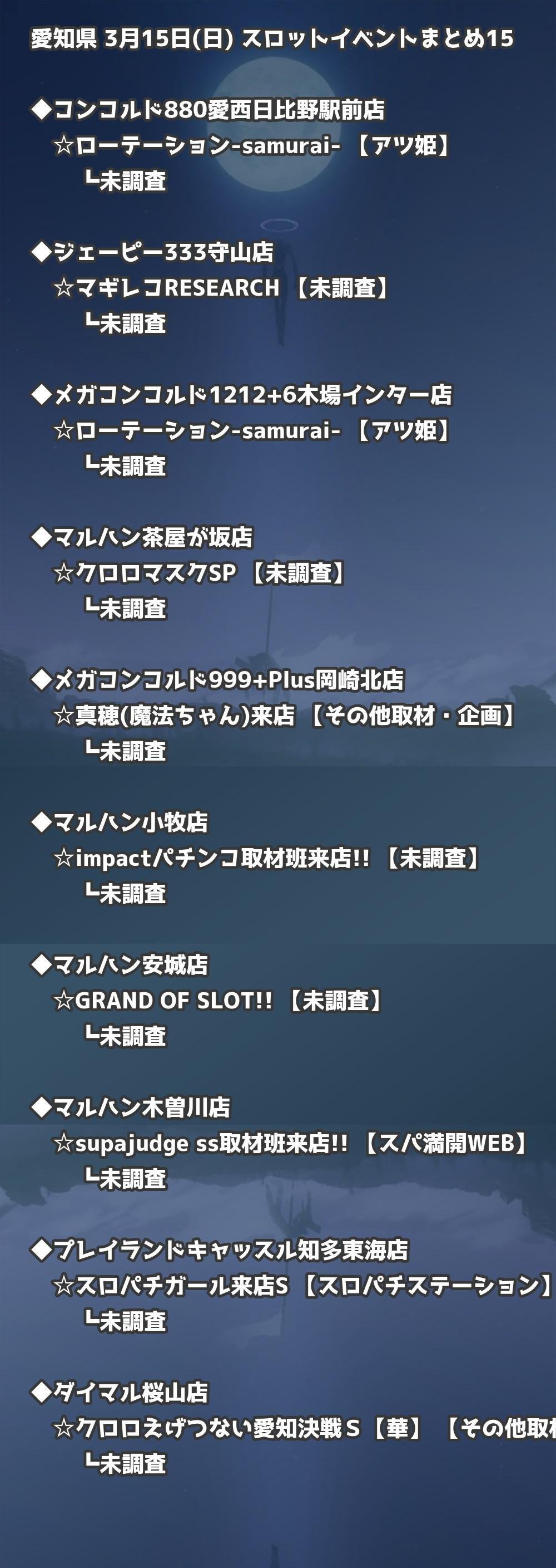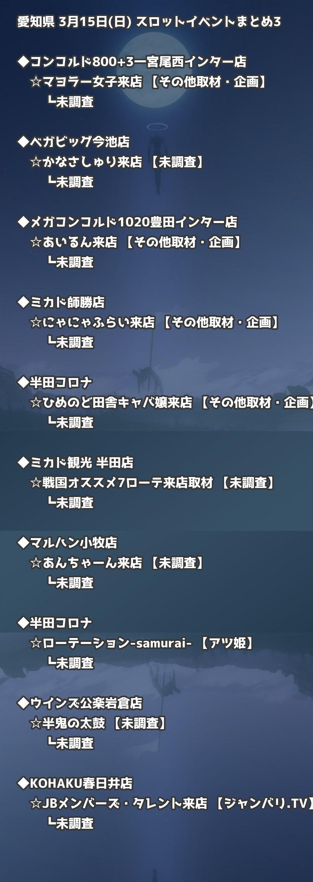 【愛知県】3月15日(日) パチンコホールイベント取材まとめ記事です。