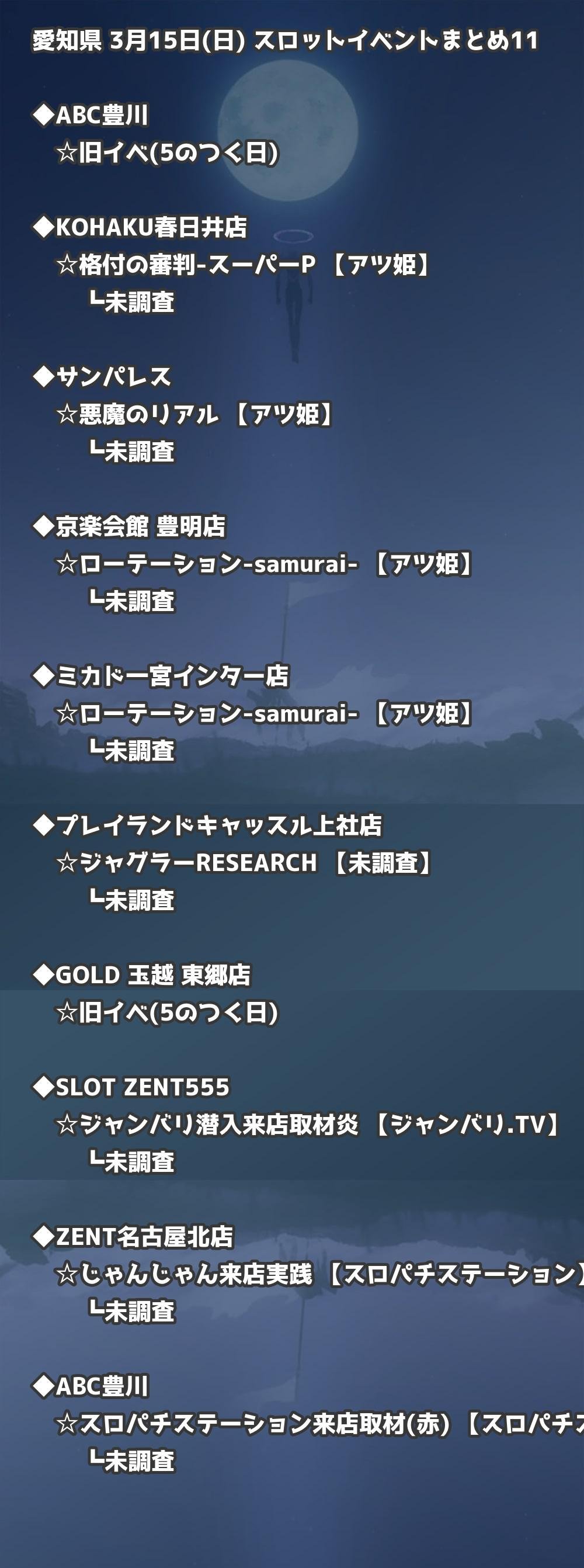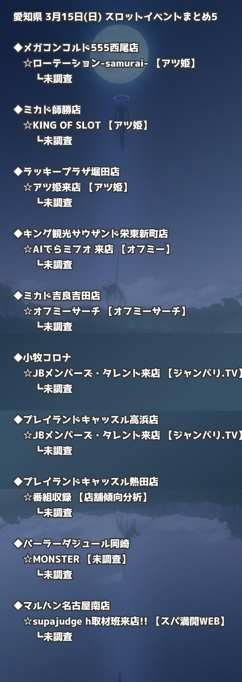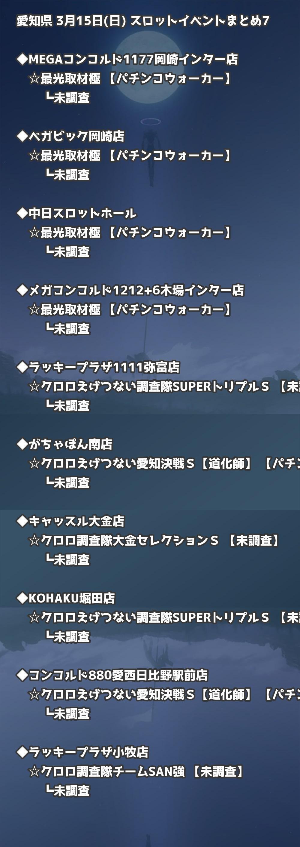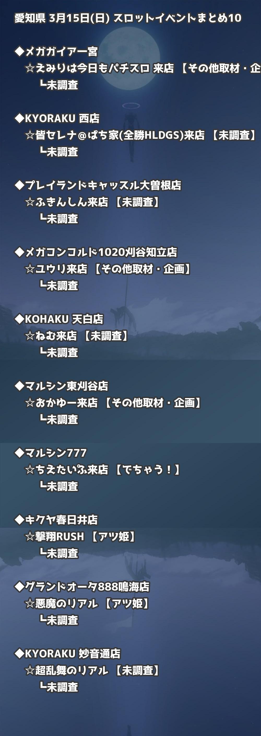 【愛知県】3月15日(日) パチンコホールイベント取材まとめ記事です。