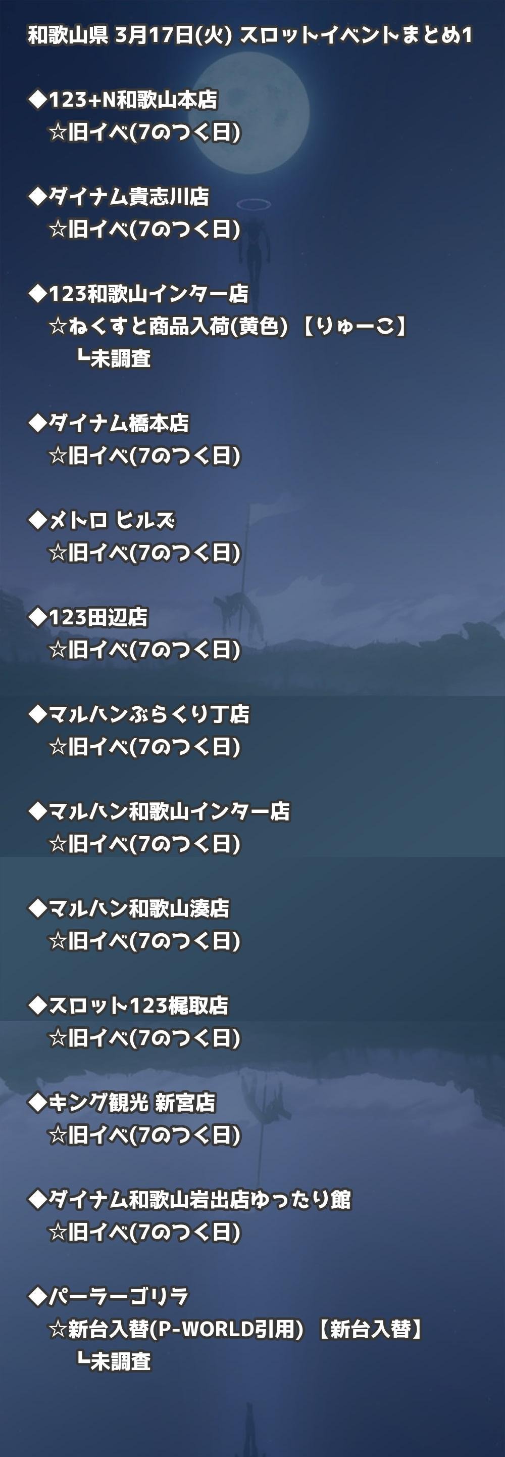 【和歌山県】3月17日(火) パチンコホールイベント取材まとめ記事です。