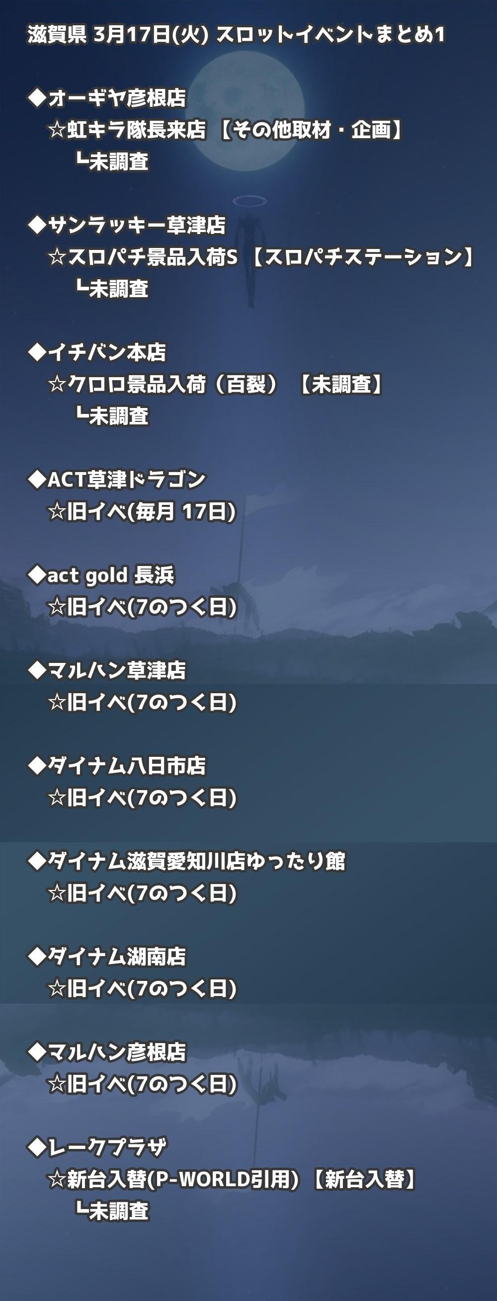 📊 滋賀県 3月17日(火) 勝てるパチンコ・スロット取材店舗一覧|おすすめ順